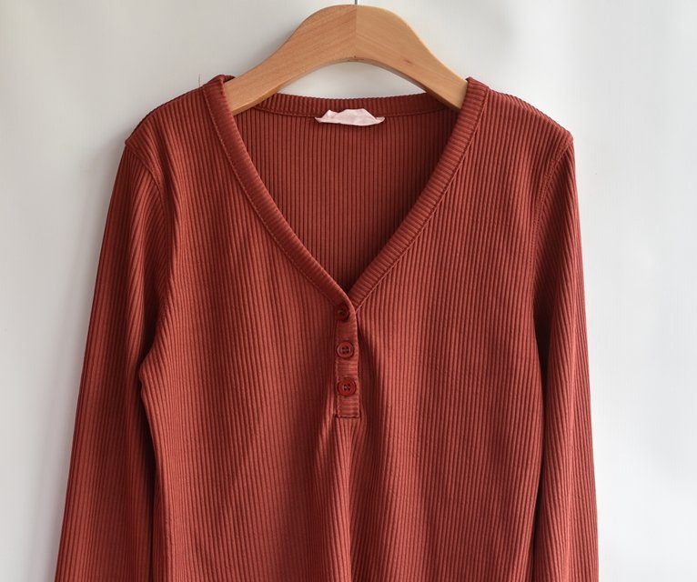 Cihlově červené tričko.
