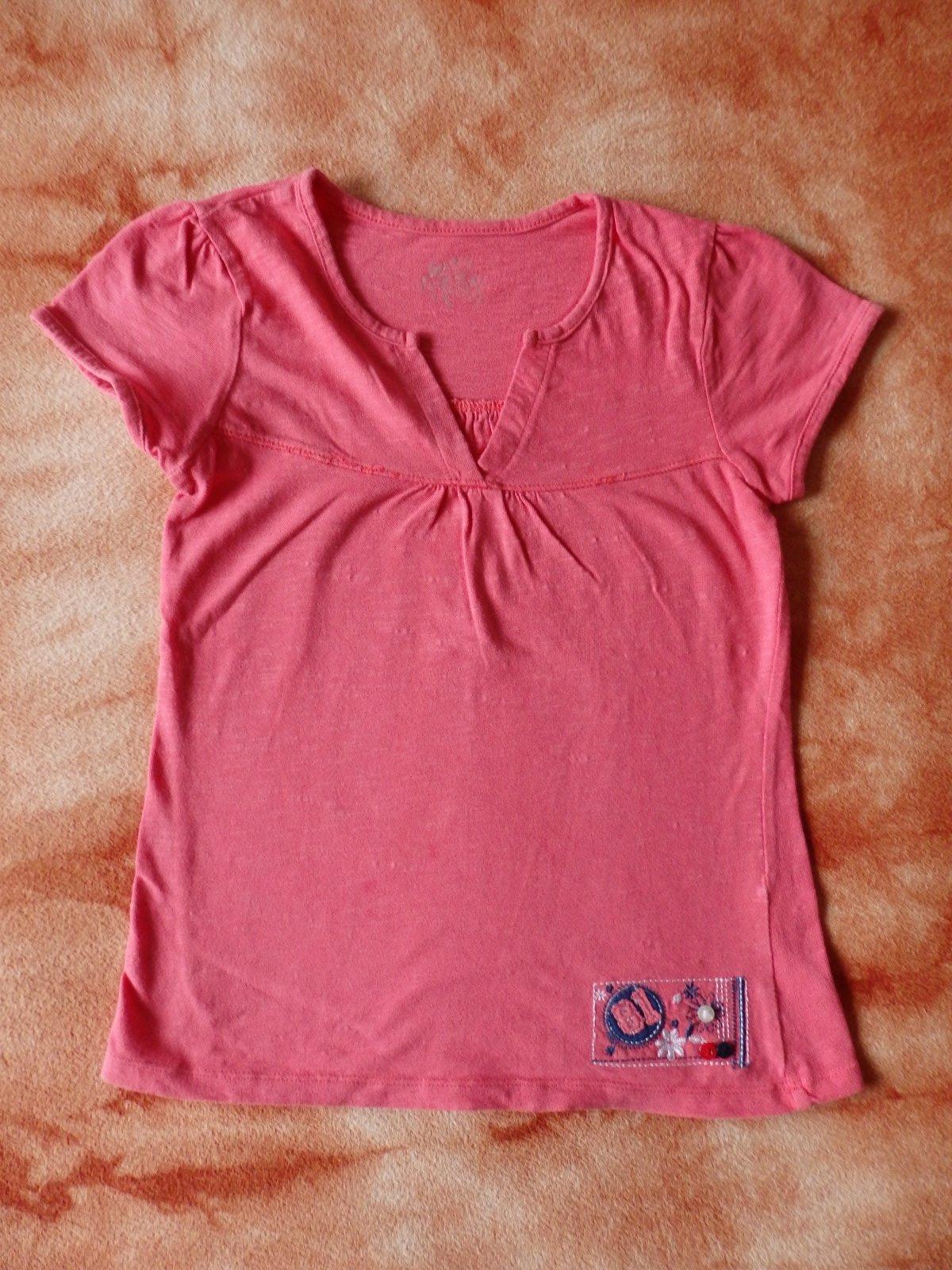 Hezké tričko s výšivkou, vedle jedné malé vyšité kytičky je dírka k zašití, ozdobný šev má místy povolené nitky (páře se). Daruji k objednávce.