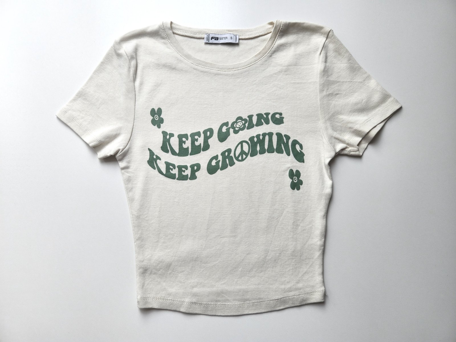 Světle béžové pružné tričko s potiskem zn. FB SISTER.