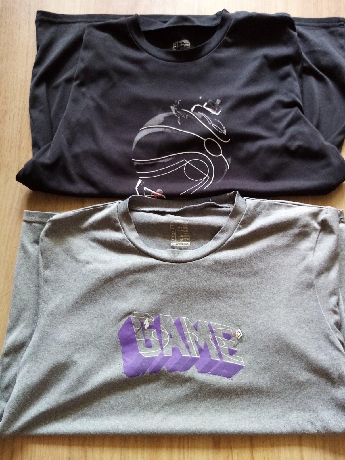 Velikost triček viz štítek. Světlejší tričko má na zadní straně vygazenych pár oček od batohu. Na funkčnosti nevadí. 100,-/1kus