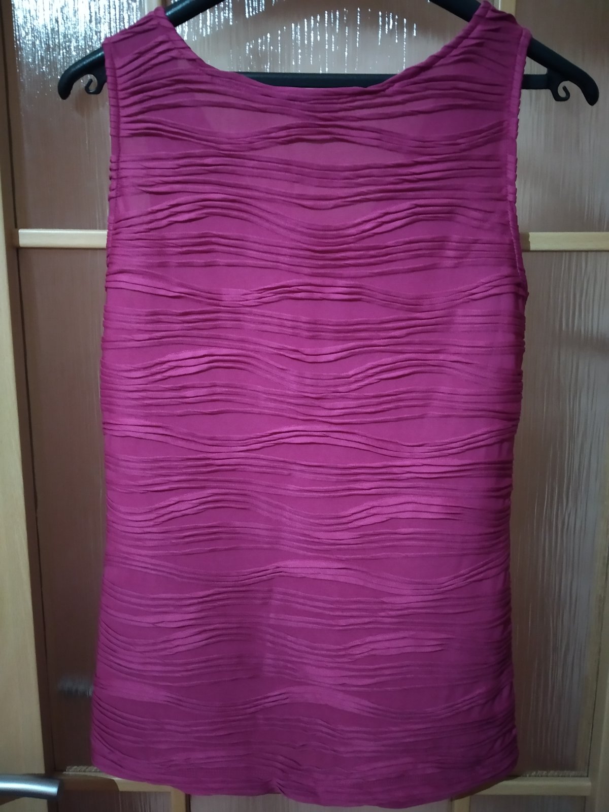 Tílko jsem měla párkrát na sobě v těhotenství, nyní je mi větší, je bez vad. Je jahodově růžové. Velikost je uvedena S (36/38), materiál je 100% bavlna. ROZMĚRY: délka od ramen 60 cm, šířka v podpa...