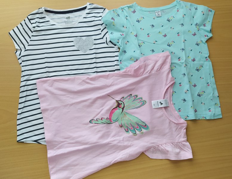 b) růžové s kolibříkem - vel. 128, zn. Palomino, krásný stav, Kč 40,-