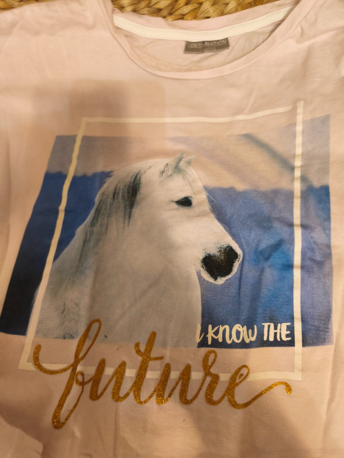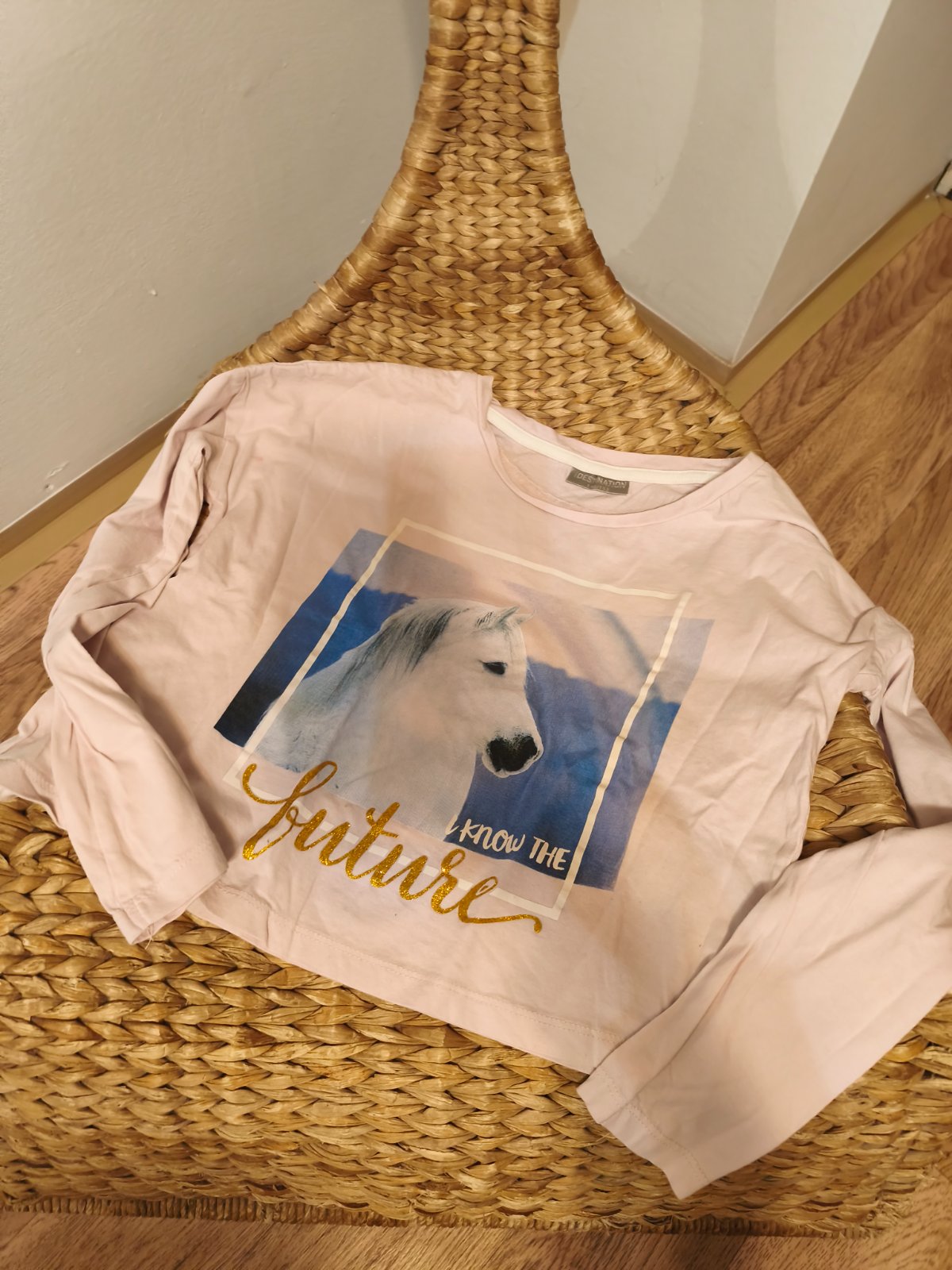 Croptop a koníkem 146/152, nošený, flíček od barvy.