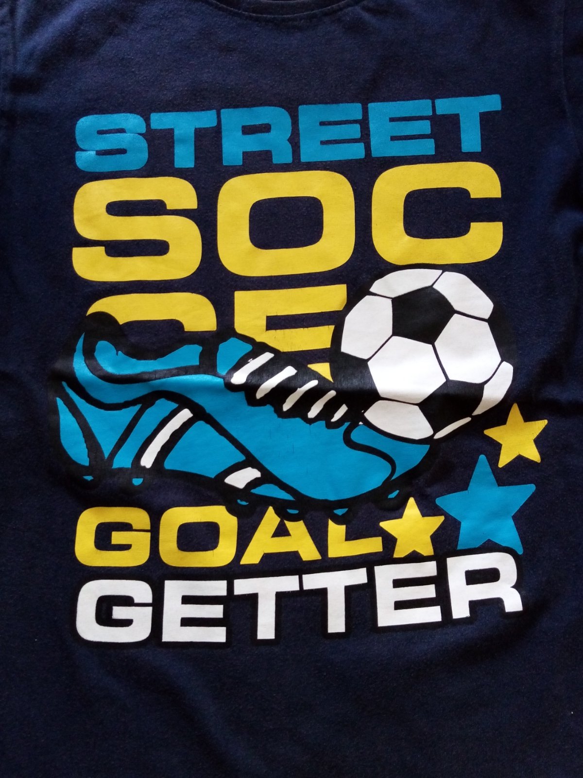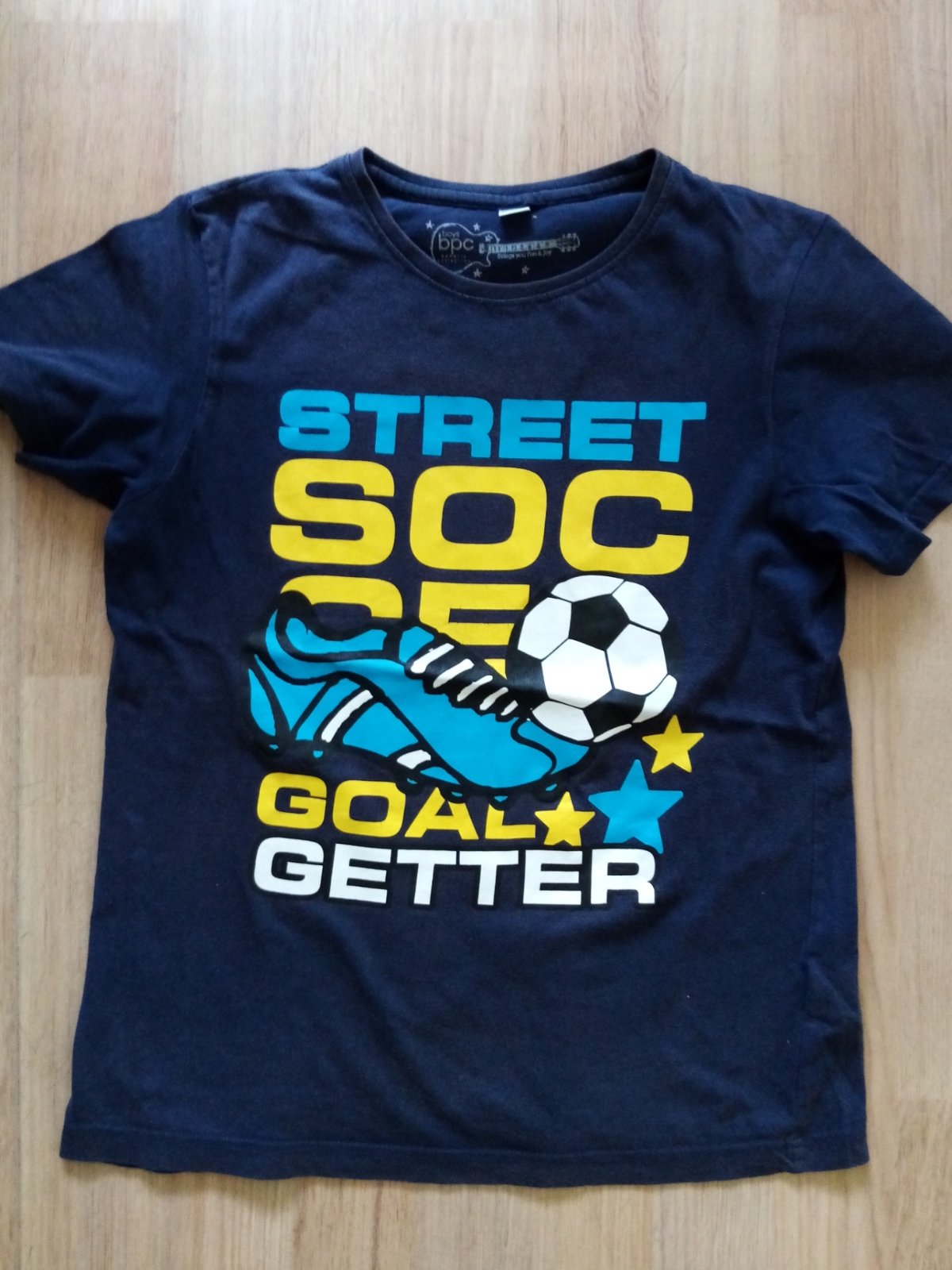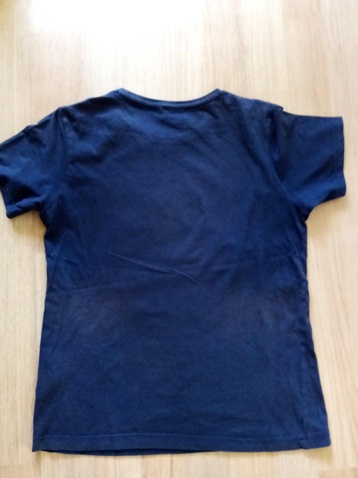 Triko již hodně šislá modrá barva. Obrázek hezky drží. Velikost odpovídá spíše 152-158. Syn nosil 11-12 let.