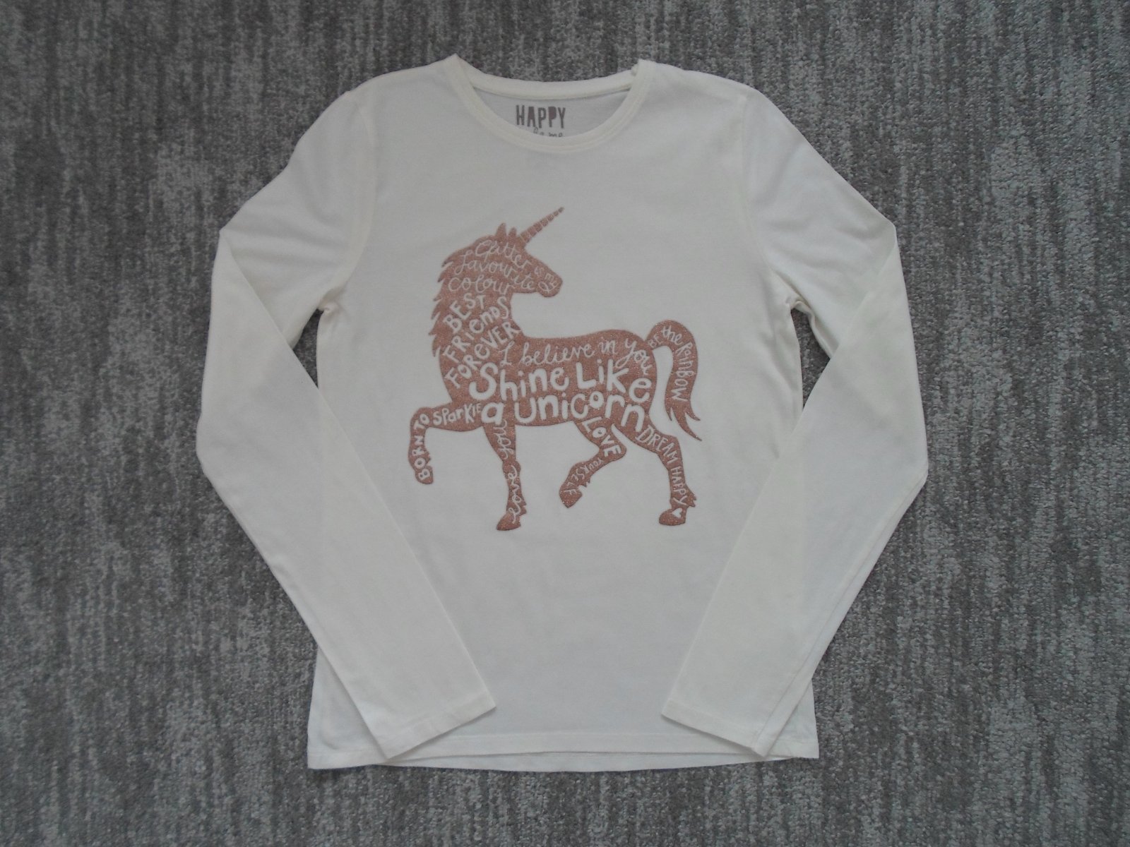 Bílé tričko triko dlouhý rukáv s jednorožcem