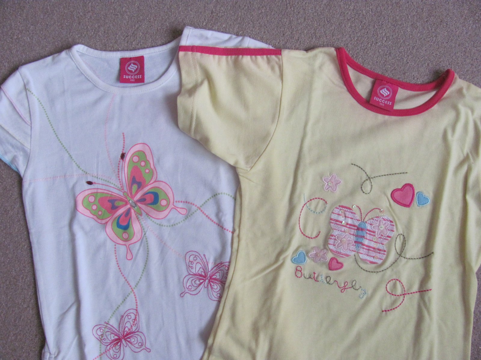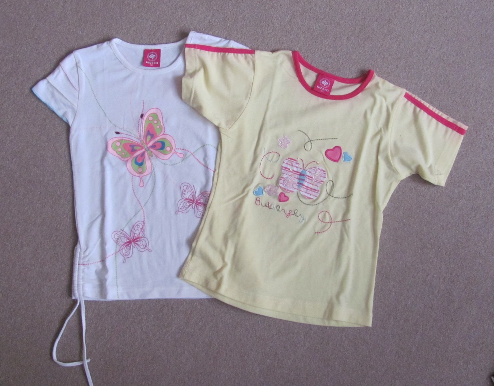 Dívčí trička, 2 ks, žluté má flíčky. Velikost 146.