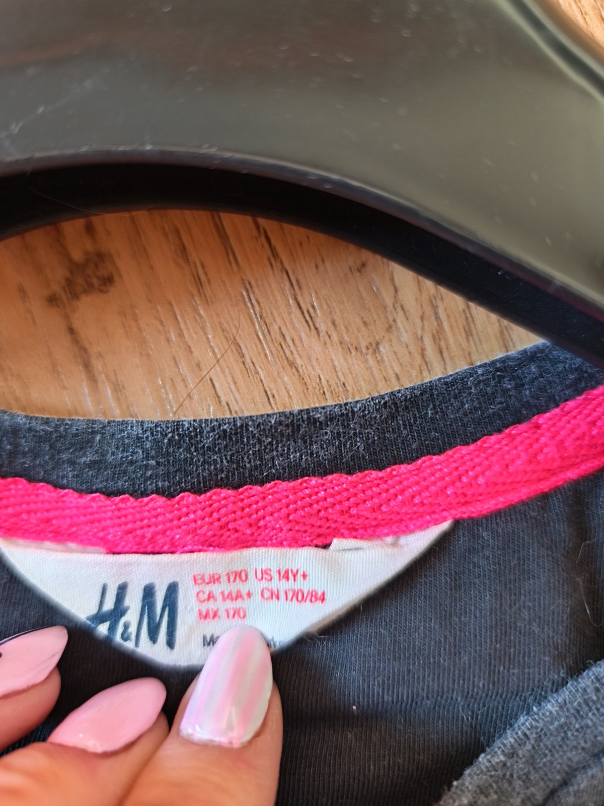 Dlouhé tričko nošené při XS-M. Opraná barva na podkladu, viditelný prací chloupek.