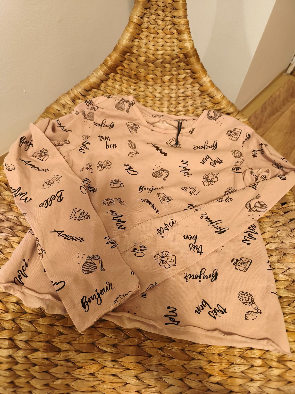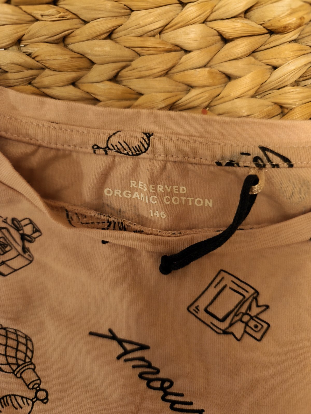 Starorůžové tričko Reserved vel.146, nenošené, bohužel fleky na rukávu, něco se na to nejspíš obtisklo. Zdarma k objednávce.