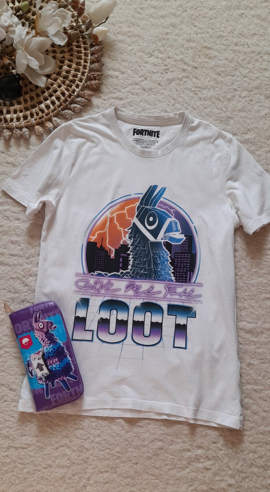 Juniorske UNISEX bílé bavlněné triko Fortnite Lama