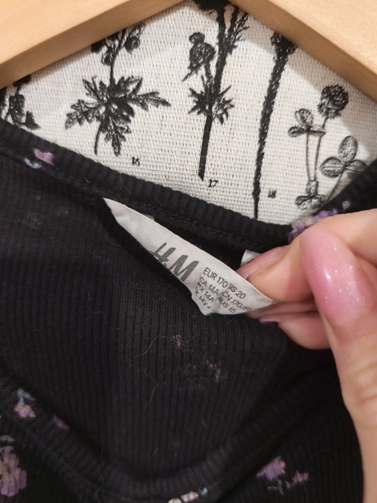 2krát vzaté tričko H&M 170, sedí XS/S, je pružné a přizpůsobivé. Přijde mi, že uprostřed, jak je nařasené, se lehce oprala černá barva, ale nebylo ani vyloženě sytě černé.
