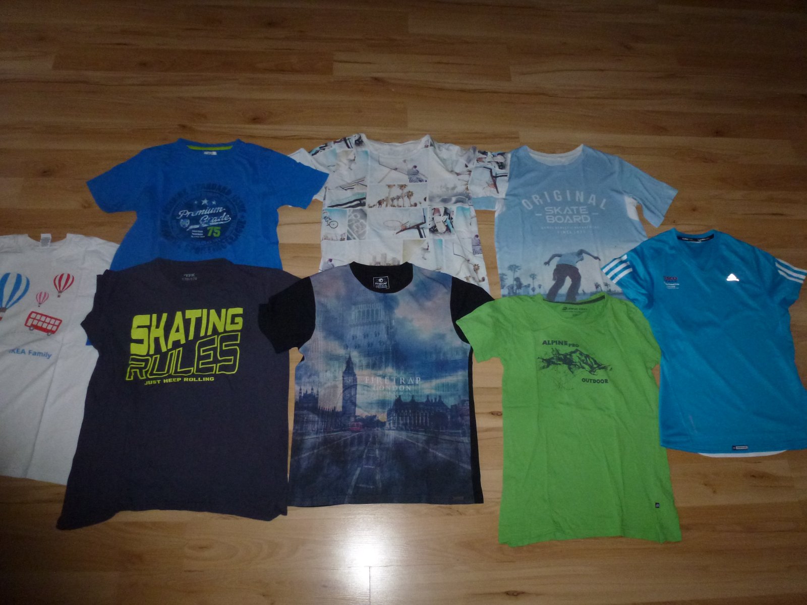 8x triko. Nošená ve stejnou dobu, přestože mají visačky s různými velikostmi (152-170), odpovídají tak 158/164. Délka cca 60cm. Kus za 30,-Kč, v případě odběru dvou nebo tří kusů je cena 25,-za kus. V případě odběru čtyř a více kusů je jedno triko za 20,-Kč.