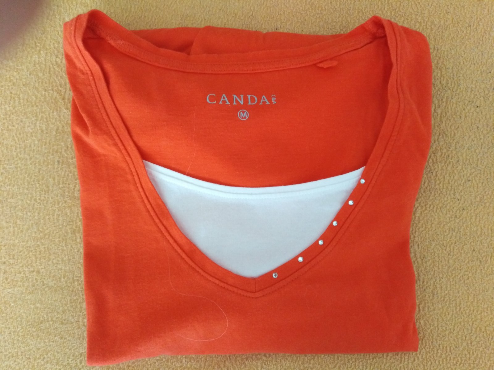 Třetí tričko (M&S) je zelenomodré měla jsem ho jen jednou na sobě kvůli barvě, jinak mi nesluší výstřih do V. Cena 80 Kč