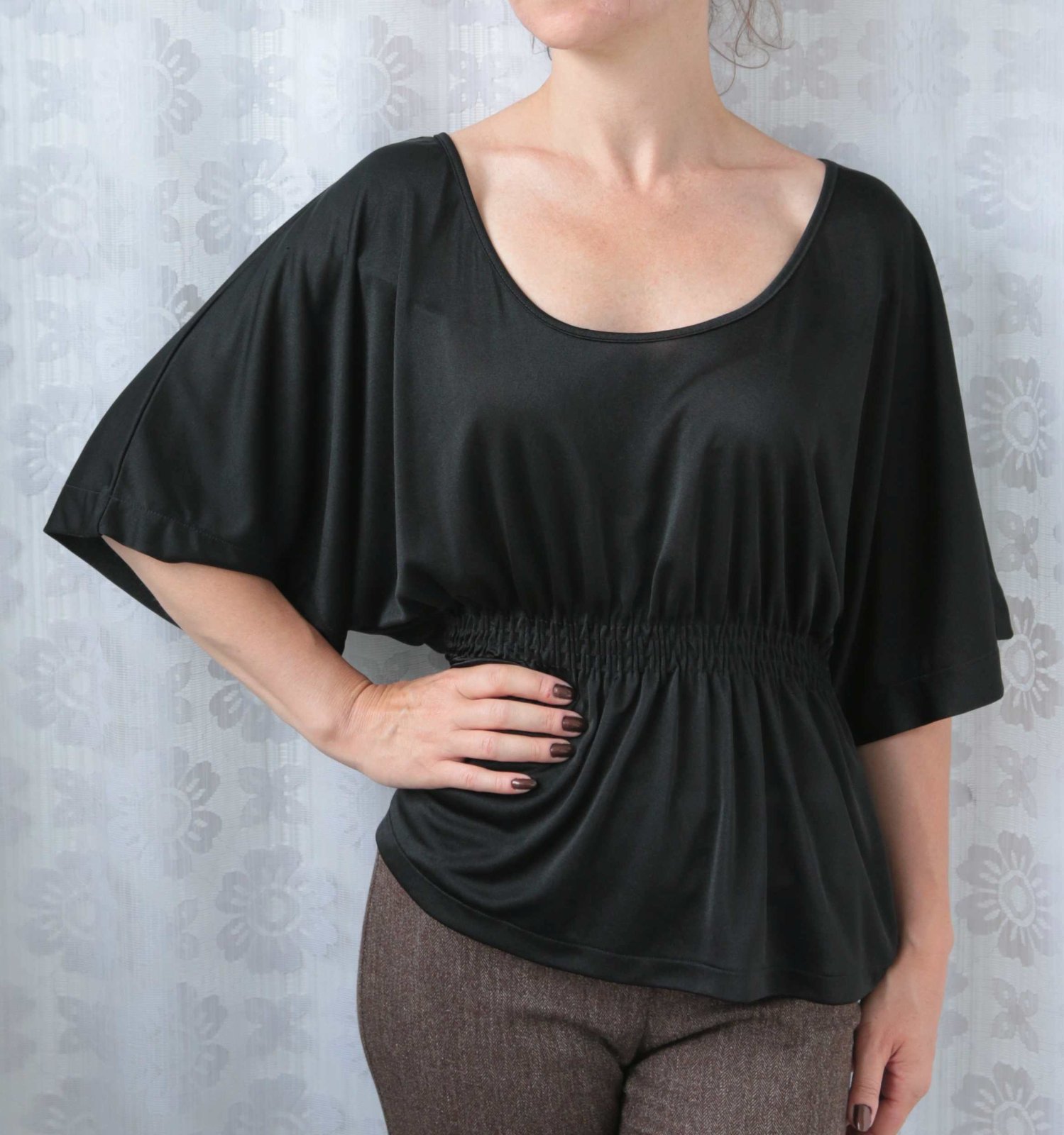 Chladivá, jemně lesklá halena, v pase nabraná do několika gumiček. Velikost uvedena S, 165/88A. Na fotce foceno na postavě S-36, ale bude to S-M univerzál. Přesné rozměry ráda zašlu. Stav super bez známek nošení. Osobní předání možno domluvit Praha, Brno, Břeclav, Hodonín. Odeslání do ČR a na Slovensko, poštou nebo Zásilkovnou, cenu za odeslání sdělím do zprávy.