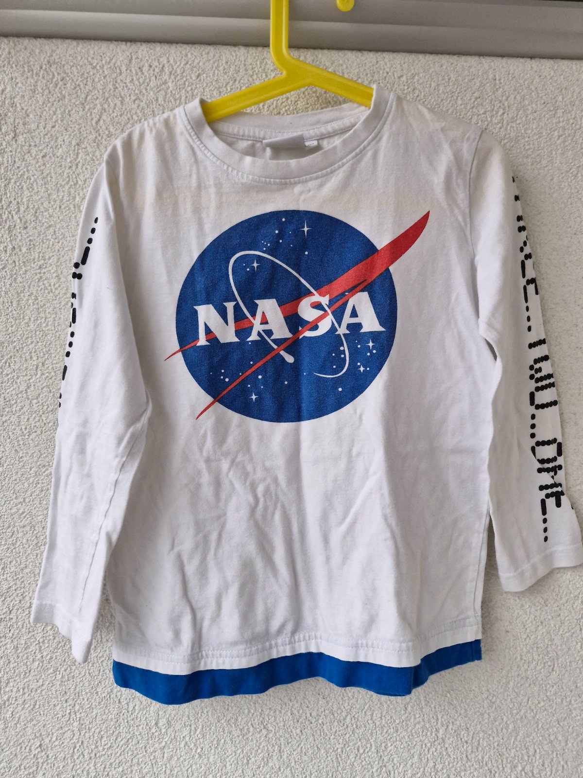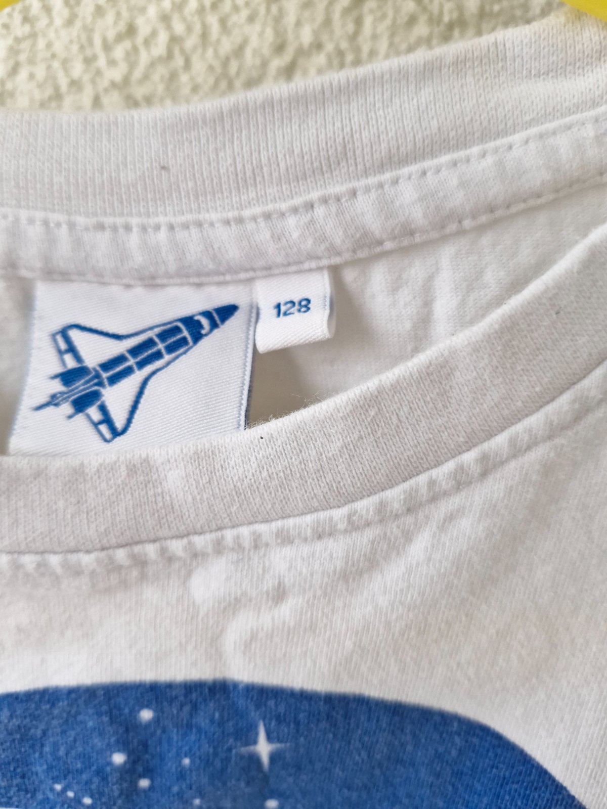 Tričko s tématikou NASA. Tričko má prací chloupek a je lehce zašedlé, uričtě ale ještě poslouží