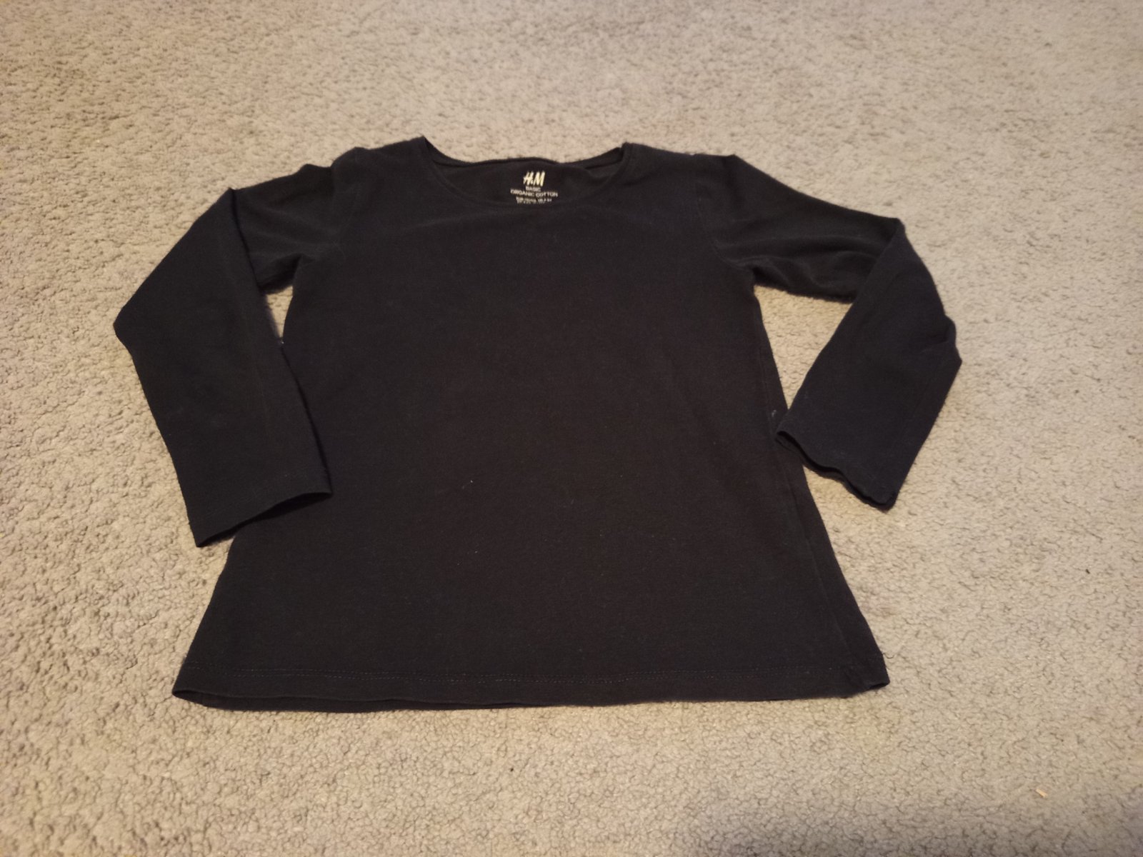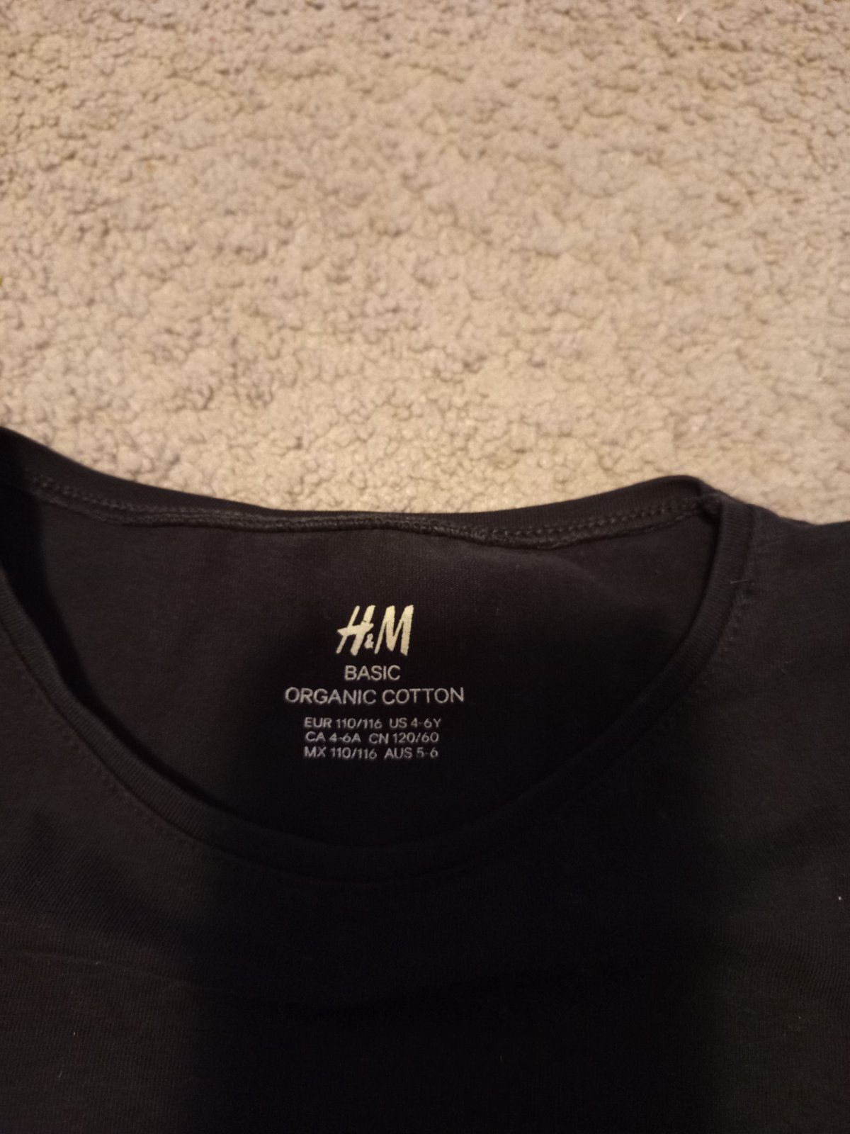Dívčí černé triko zn. H&M, vel. 110/116, se vzorem srdíček (jsou málo vidět, ale tak je to schválně), délka 40 cm
