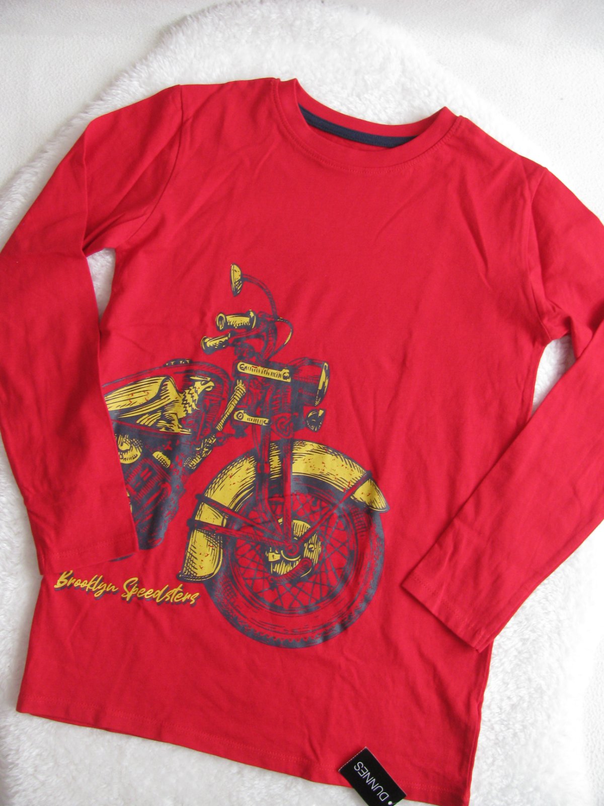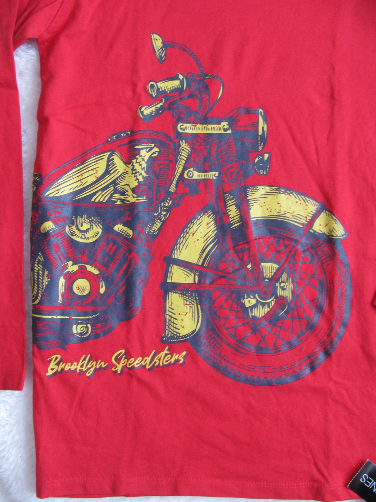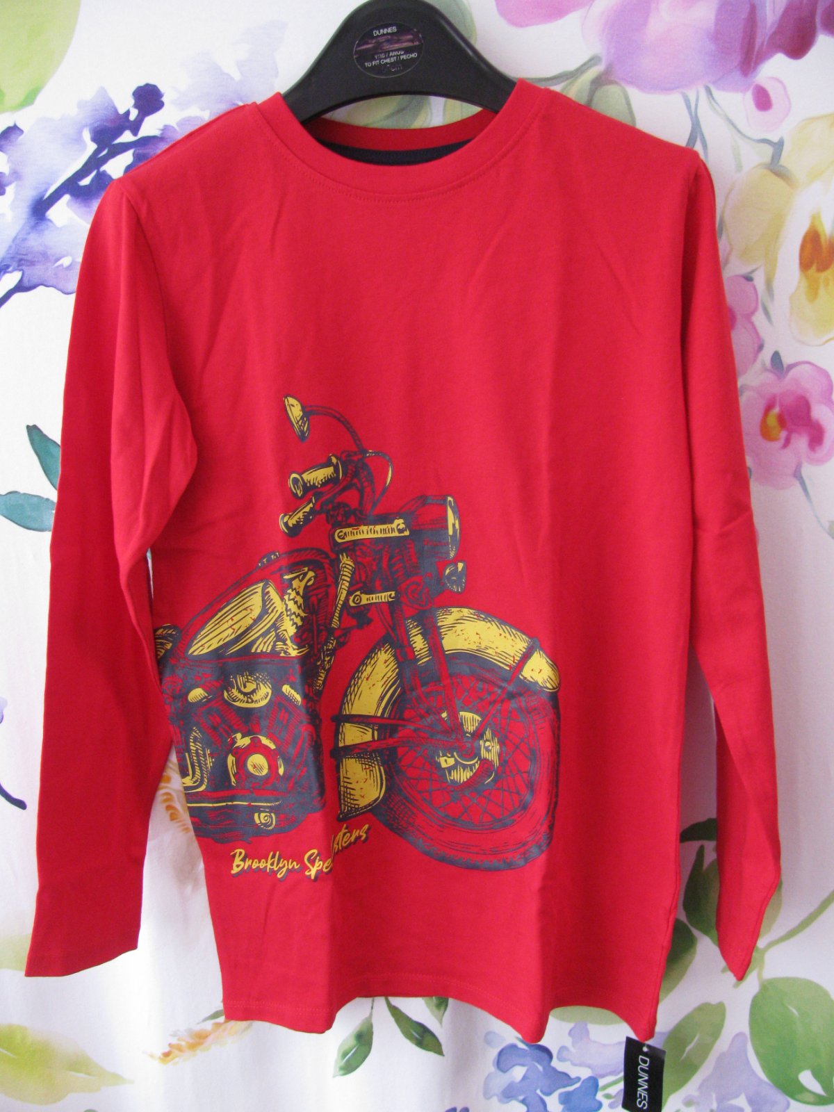 Krásné 100% bavlněné tričko s dlouhým rukávem, tištěný obrázek motorky.