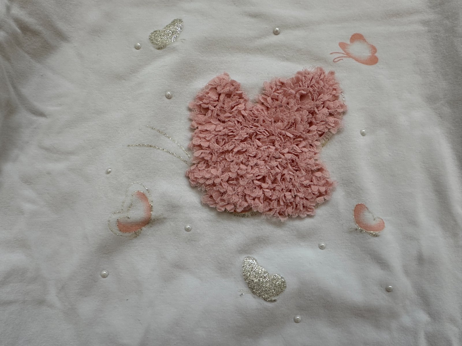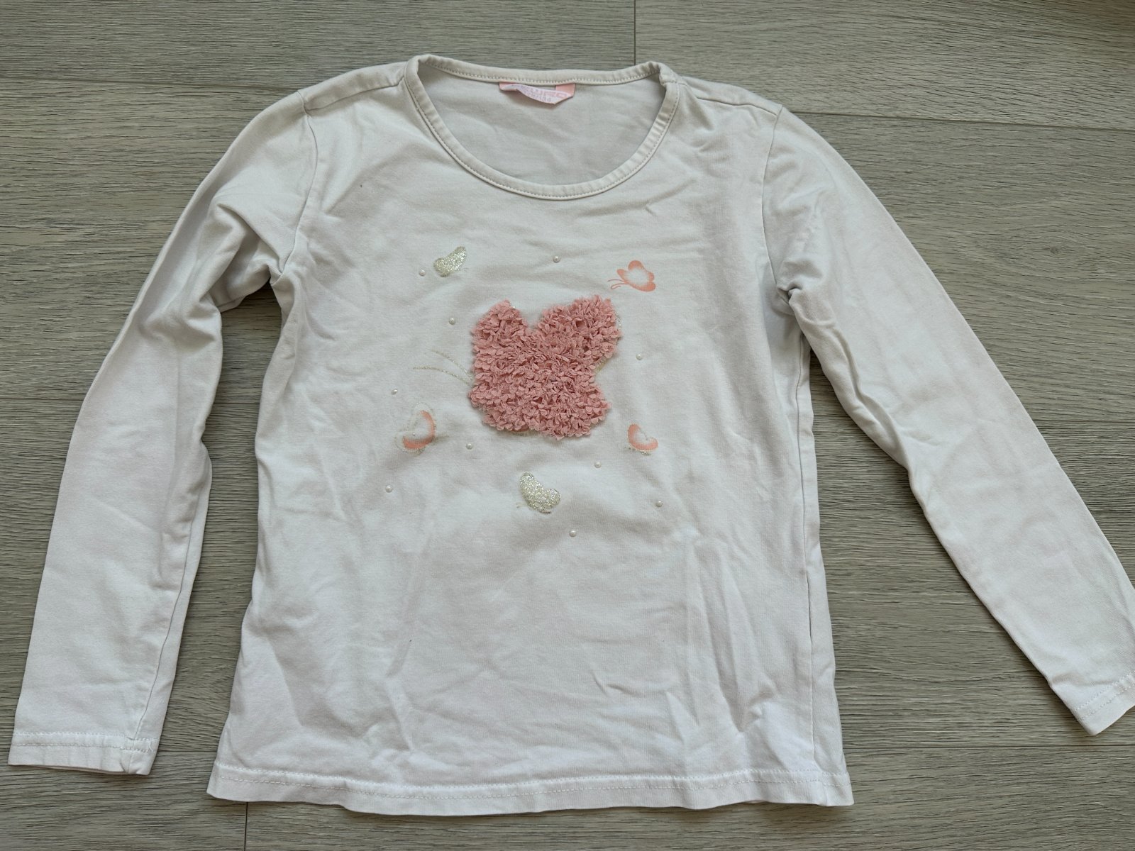 - bílé tričko s dlouhým rukávem s 3D růžovou aplikací