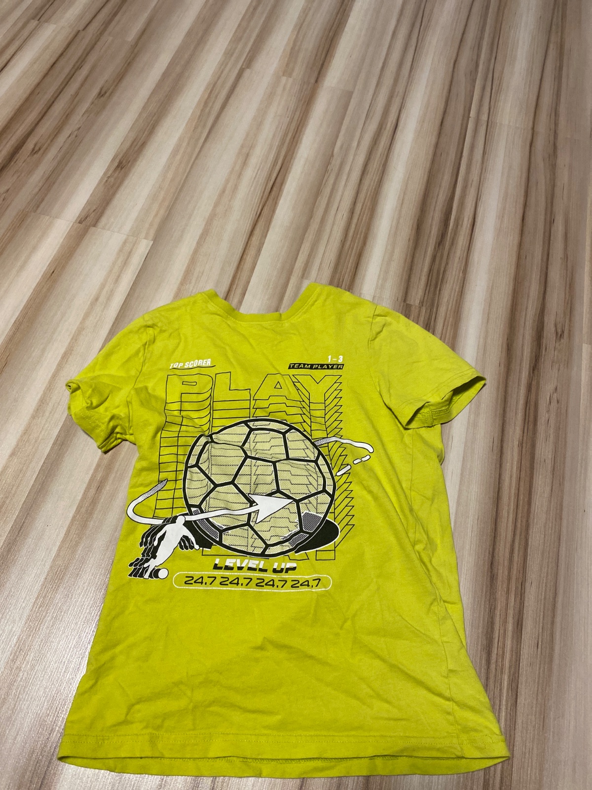Hezké barevné chlapecké tričko s tištěným obrázkem, 100% bavlna. Na tričku jsou slabé flíčky- vše nafoceno, hodí se na lítačku. Zohledněno v ceně. Značka DEELUXE Velikost 140 Rozměry dél.-50cm,,h...
