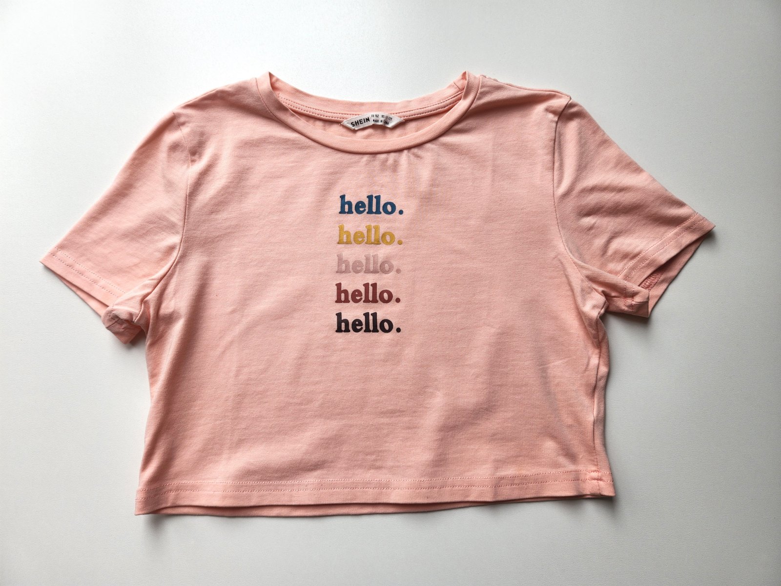 Světle lososové pružné tričko s potiskem zn. SHEIN.
