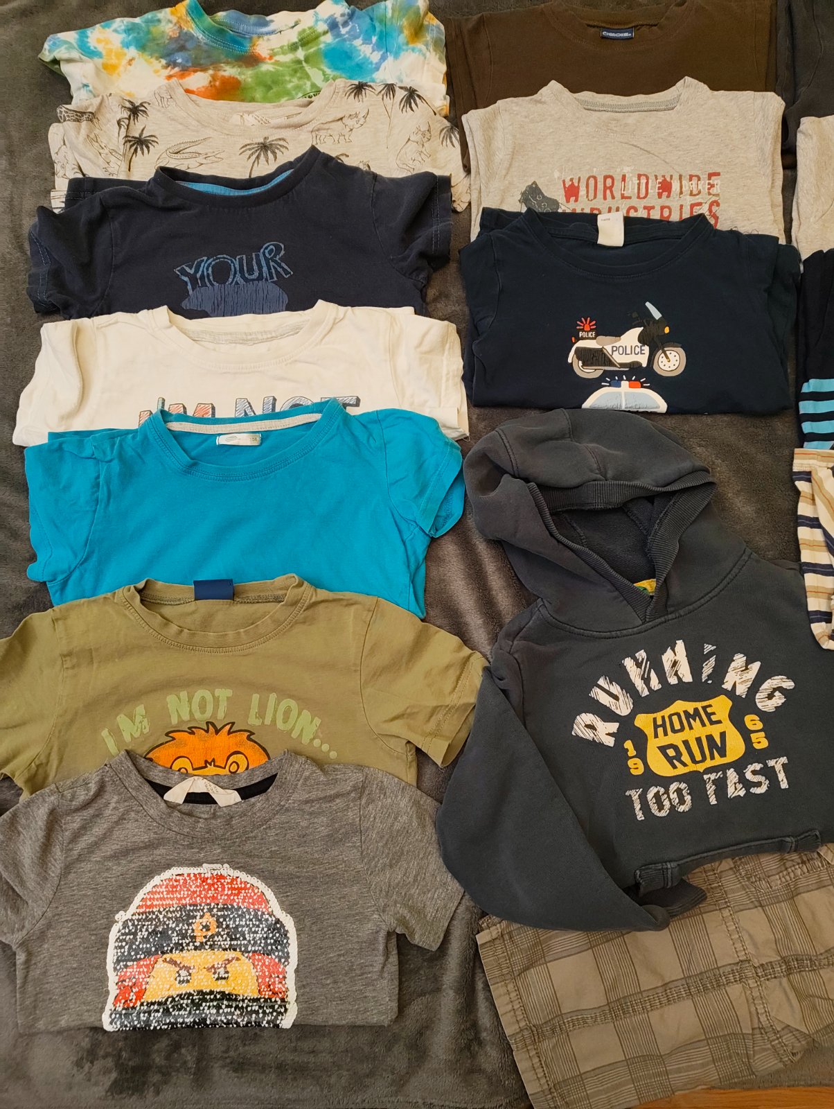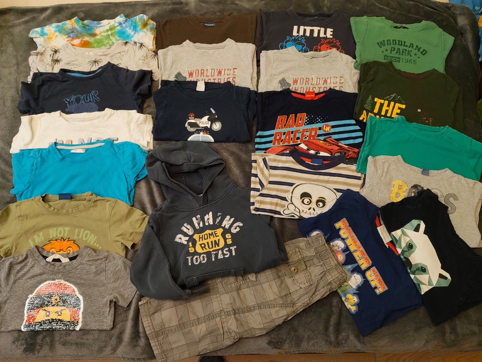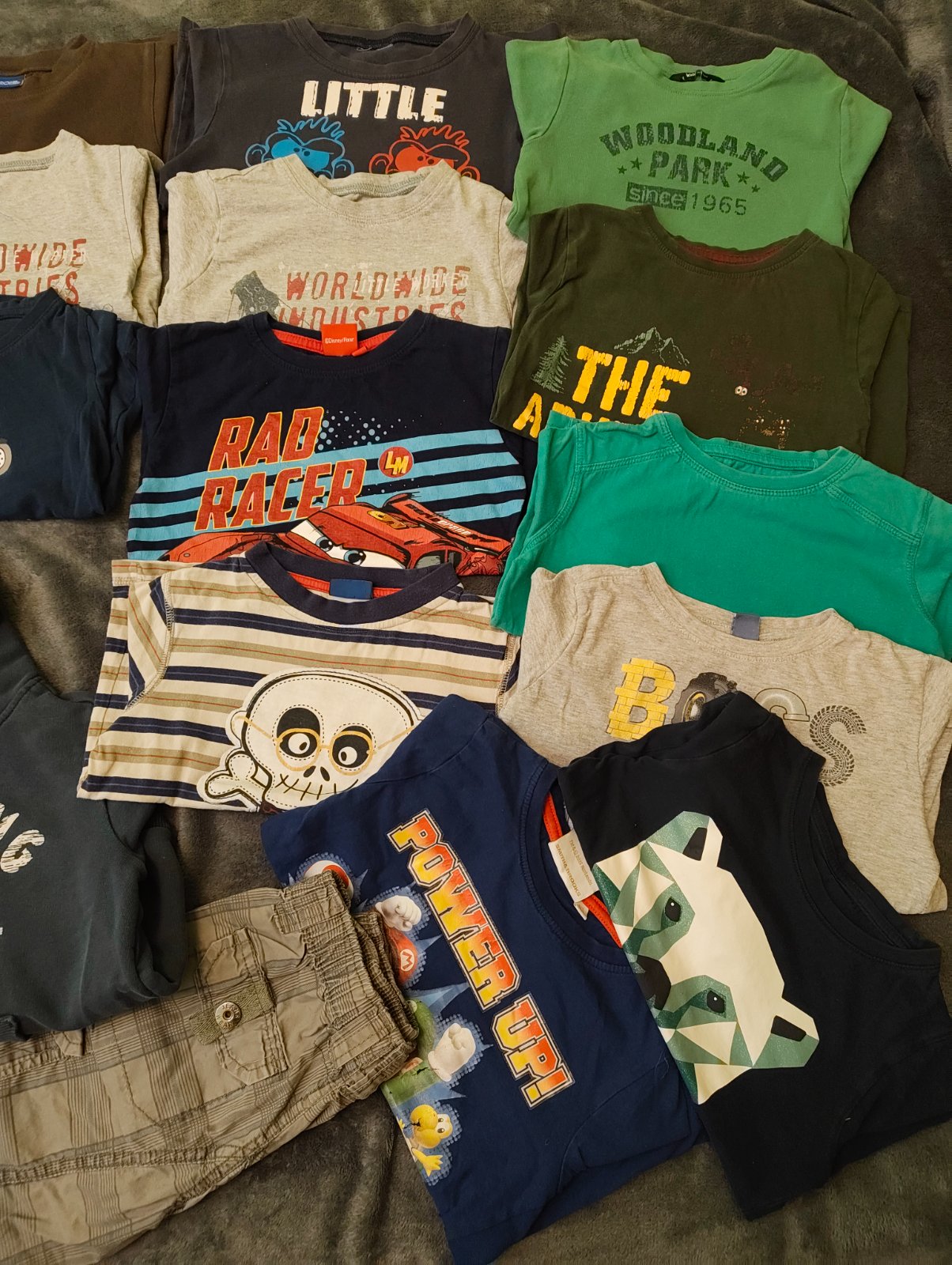 Triko po 1 synovi, auta na prsou jsou už vybledlá. Bez dírek či fleků.
