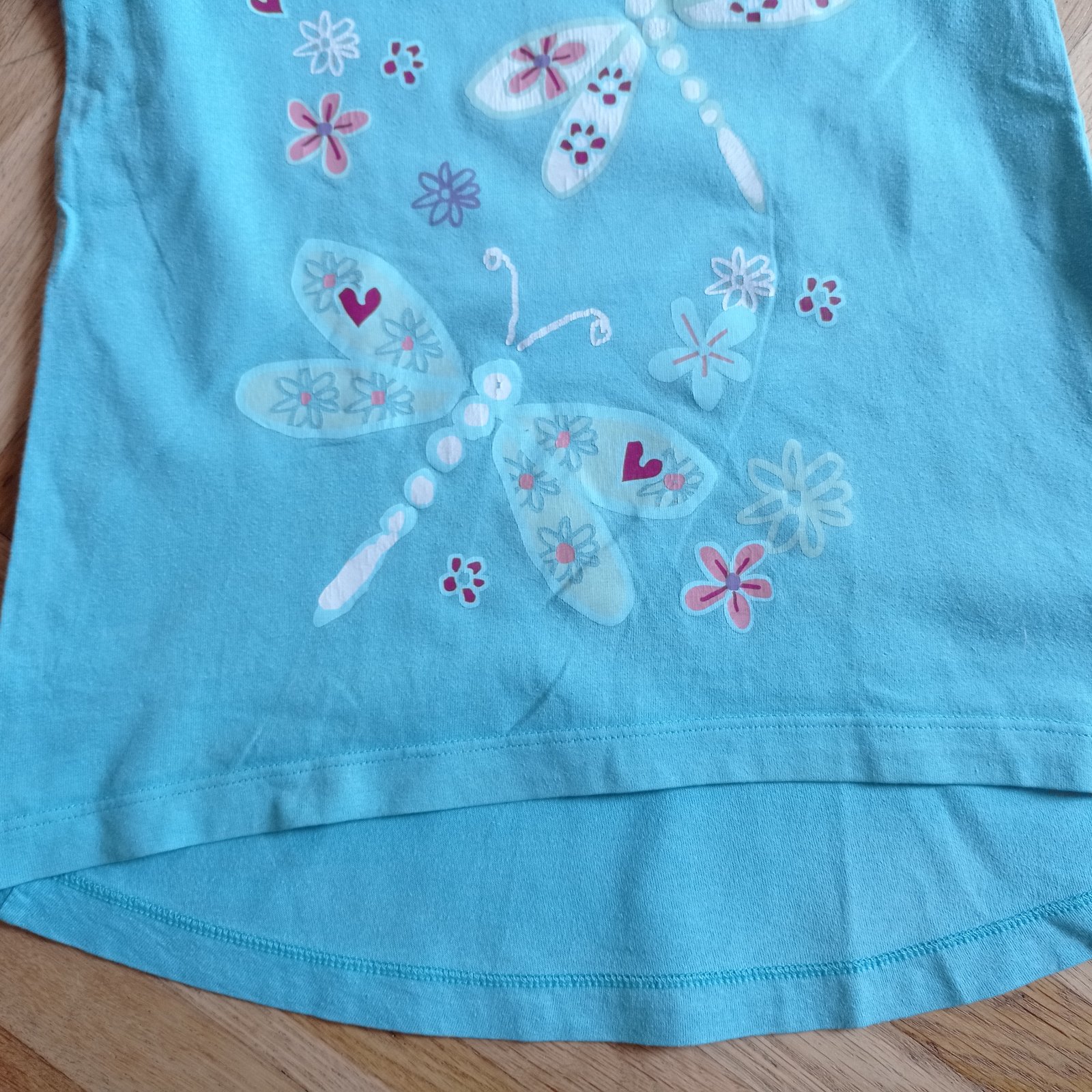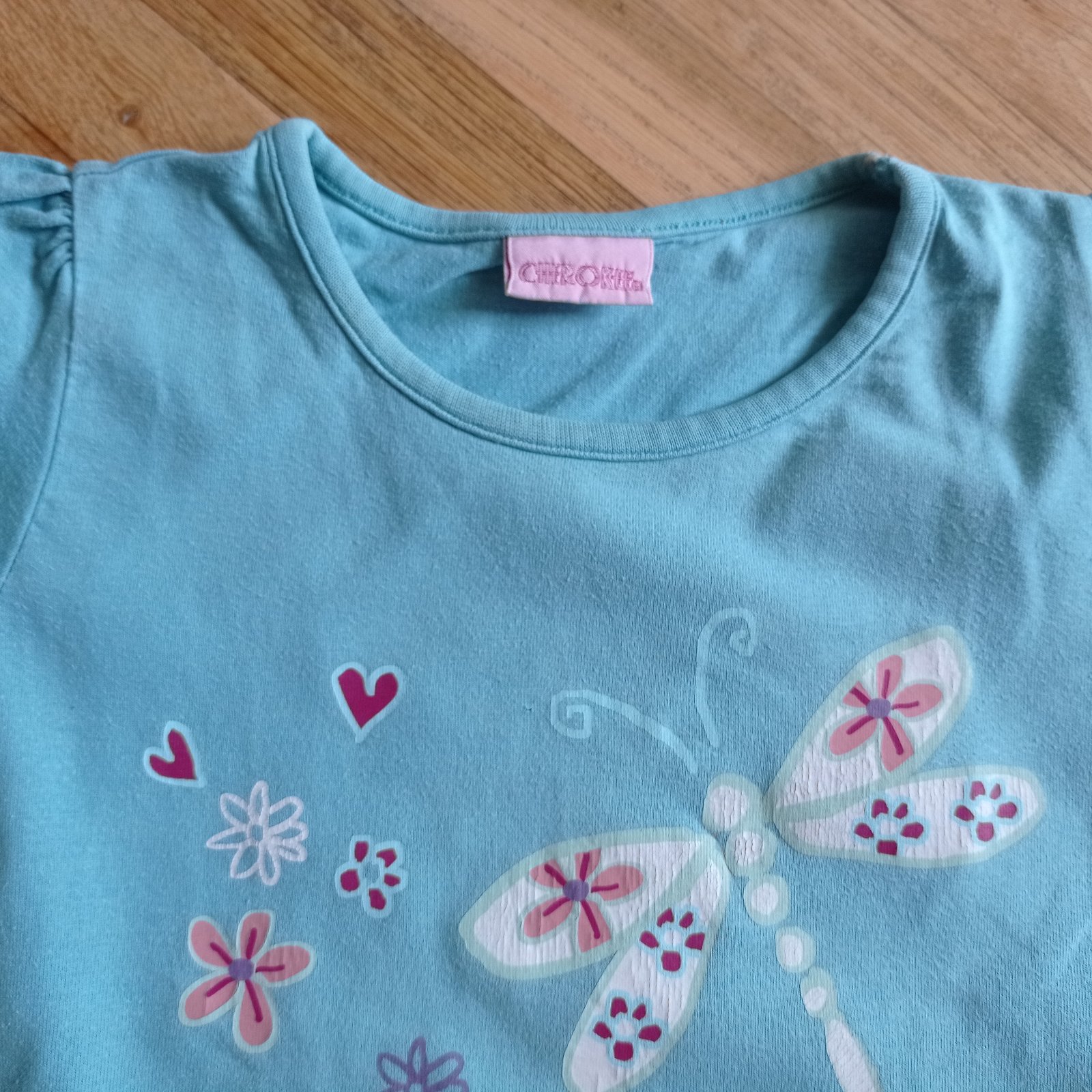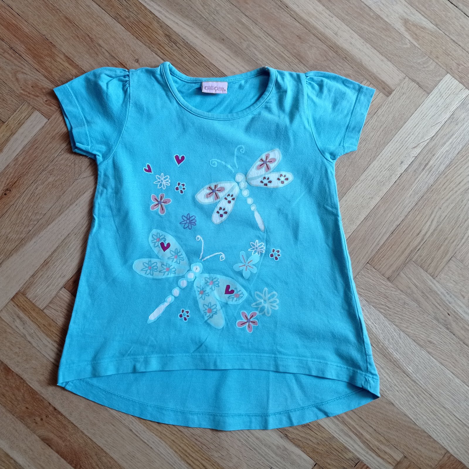 Dívčí tričko zn. Cherokee, vel. 116, délka 40 cm, šířka 28 cm, na předním díle v dolním lemu malinko nastřižené a malinká dírka, na donošení