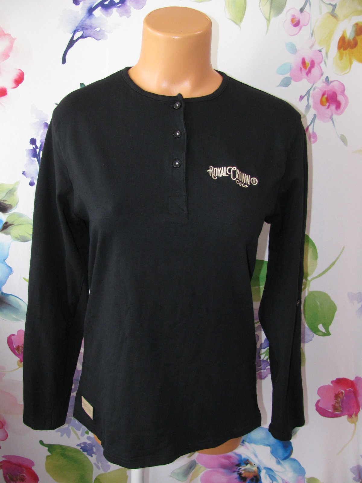Bavlněné černé tričko s rolo rukávem, pod krkem zap. na knoflíky, vyšité logo na prsou, 82% bavlna, 14% viskoza, 4% elastan. Top stav bez vady.