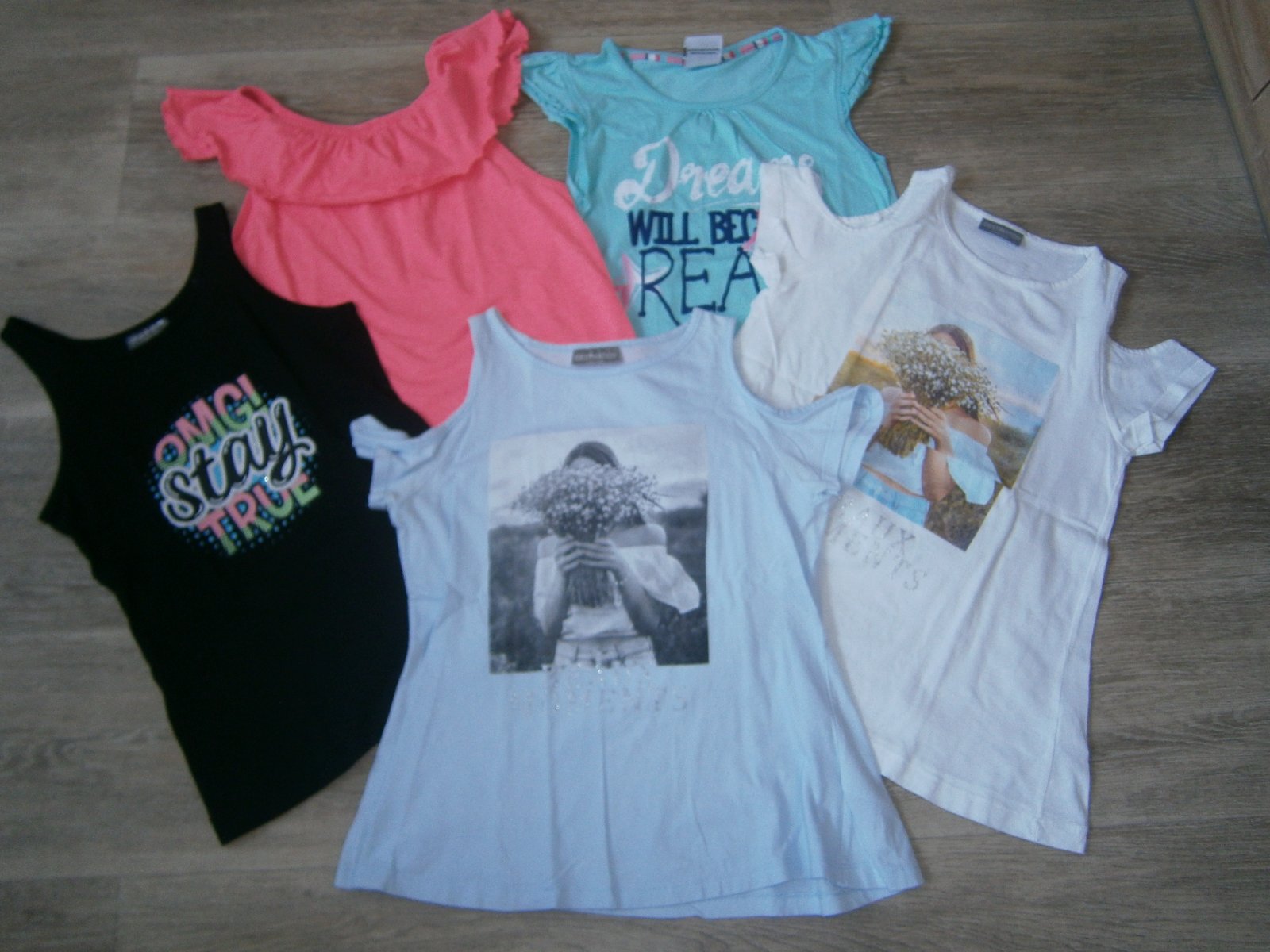 Prodám trika vel. 146/152. Délka 53-55 cm, na jednom triku pidi flíček- viz foto. Cena je bez poštovného a nesmlouvám o ní. Na dobírku nezasílám, možnost osobního odběru.