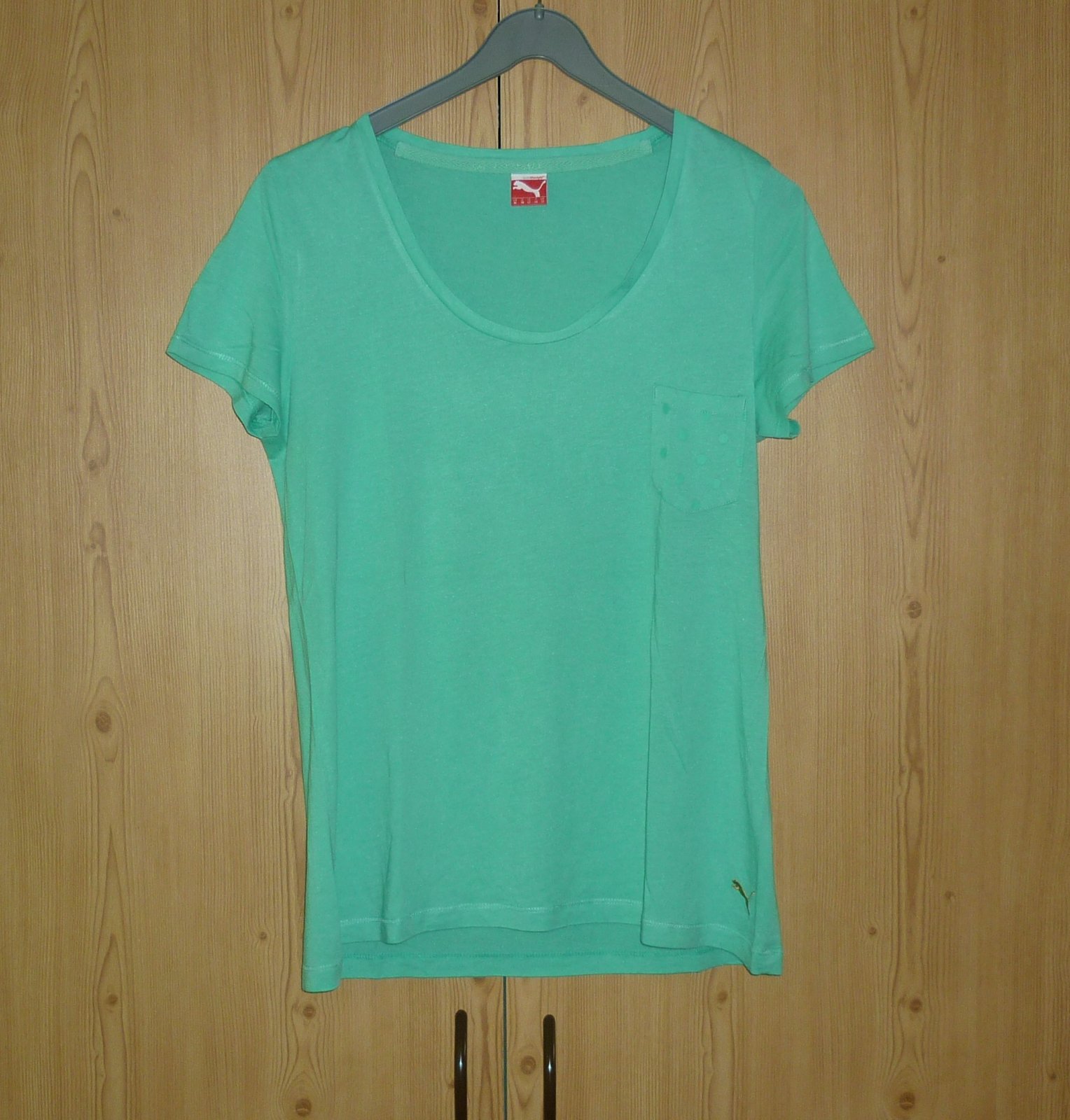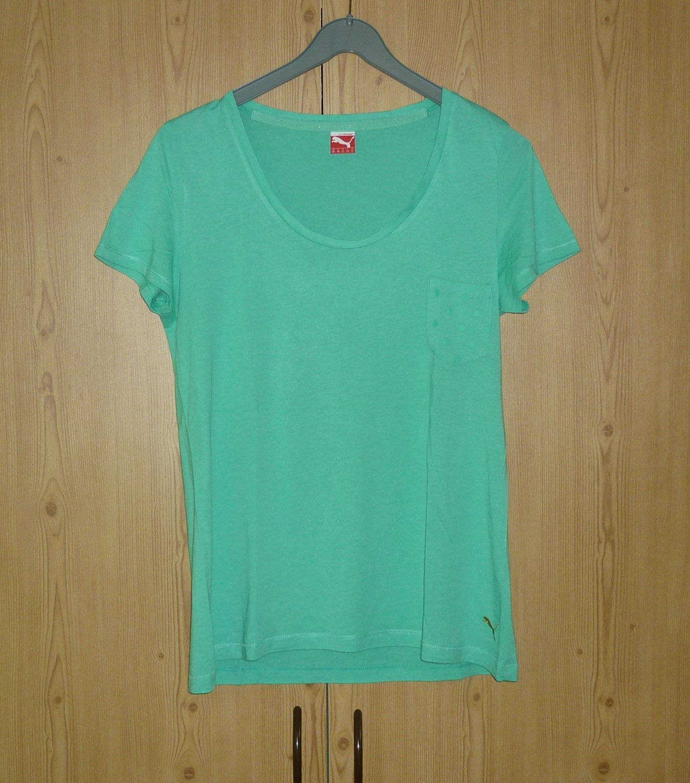 Prodám mentolově zelené dámské tričko Puma, pouze 1x na sobě, ve velmi dobrém stavu! Kulatý výstřih, krátký rukáv, vpředu nahoře kapsička s puntíky, vpředu dole vyšitý znak. Velmi příjemný, lehký, bavlněný materiál. Velikost: M. Rozměry: šířka v místě podpaží 47cm x 2, celková délka 67cm. Cena: 150,-Kč + poštovné. Koukněte na moje další inzeráty, třeba si něco vyberete a ušetříte na poštovném. Tel.: 728 455 567