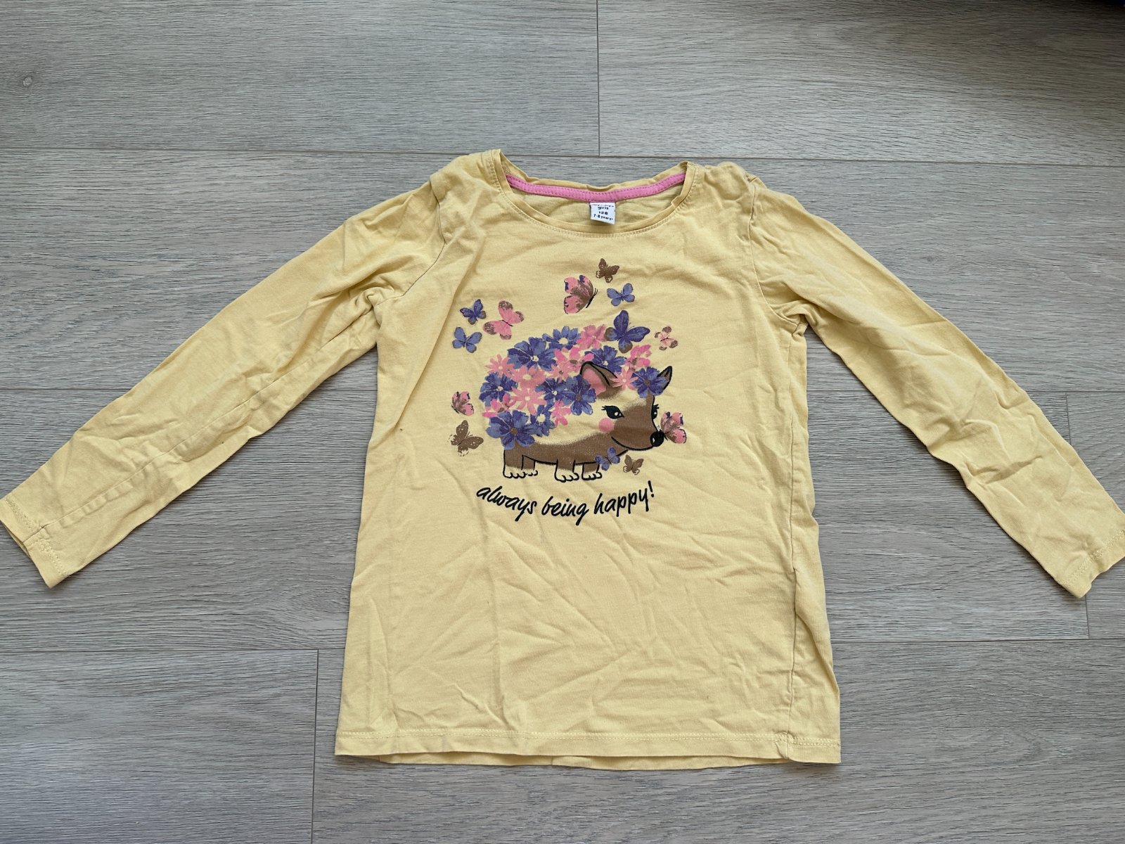 - žluté tričko s dlouhým rukávem s obrázkem ježka