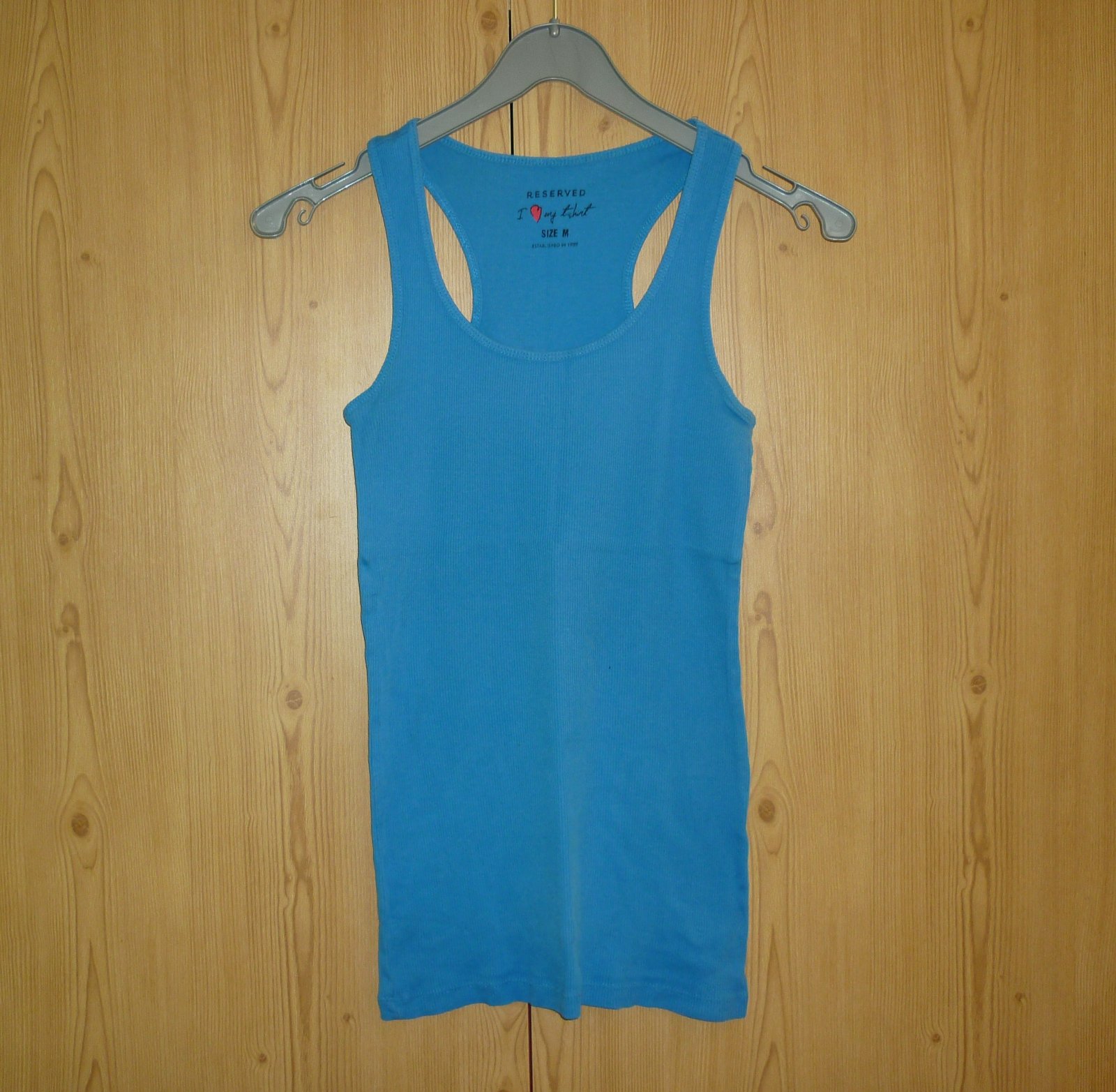 Prodám modré bavlněné tílko Reserved, nošené, ve velmi dobrém stavu. Velikost: M. Rozměry: šířka v místě podpaží v klidu 32cm x 2, šířka v místě podpaží po natažení 47cm x 2, celková délka 64cm. Cena: 35,-Kč + poštovné. Koukněte na moje další inzeráty, třeba si něco vyberete a ušetříte na poštovném. Tel.: 728 455 567