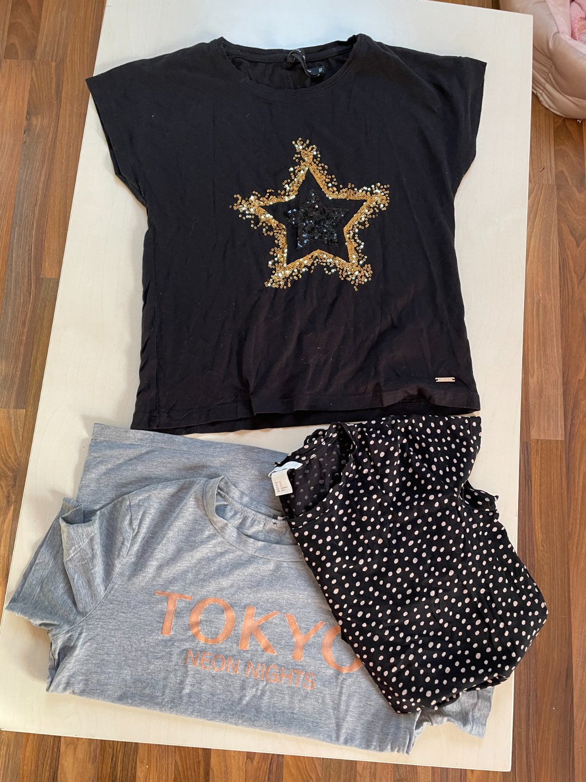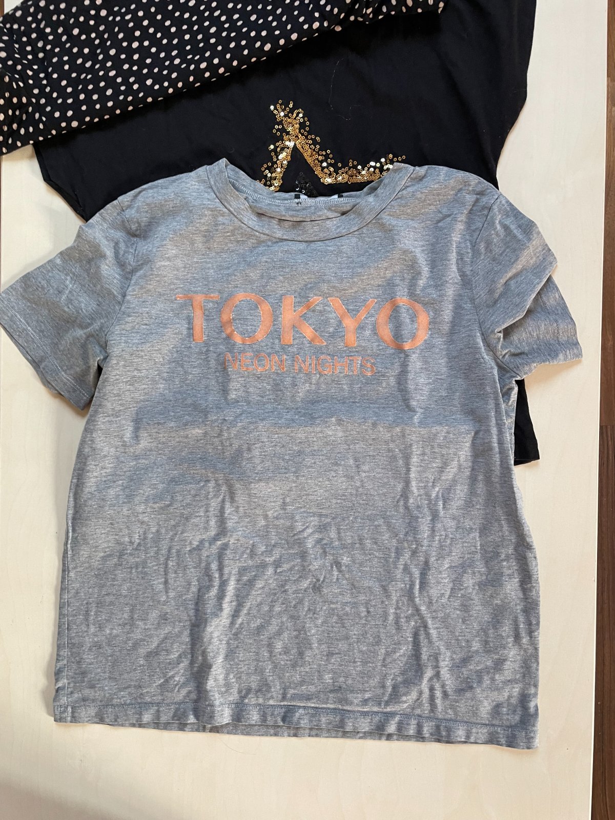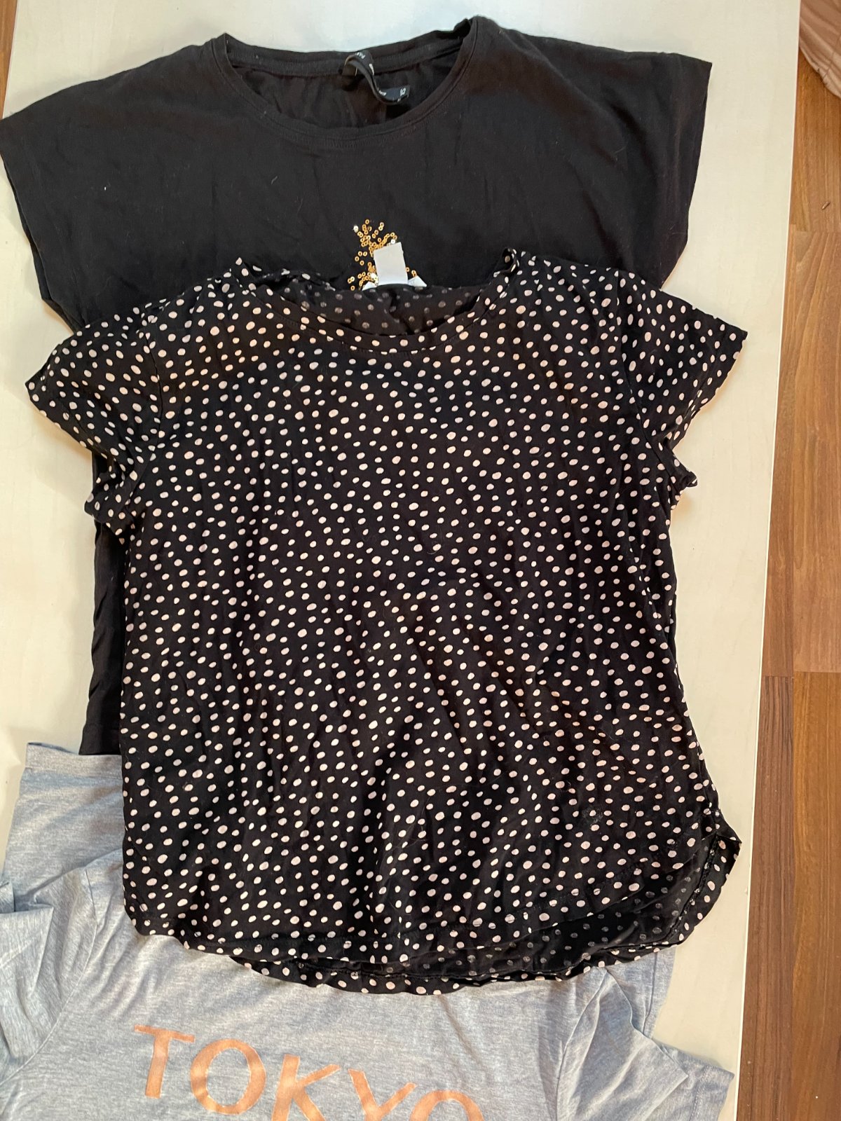 hol. nabízím k prodeji tento set 2 trik + šedé je zdarma (má opraný nápis), vel XS a S.