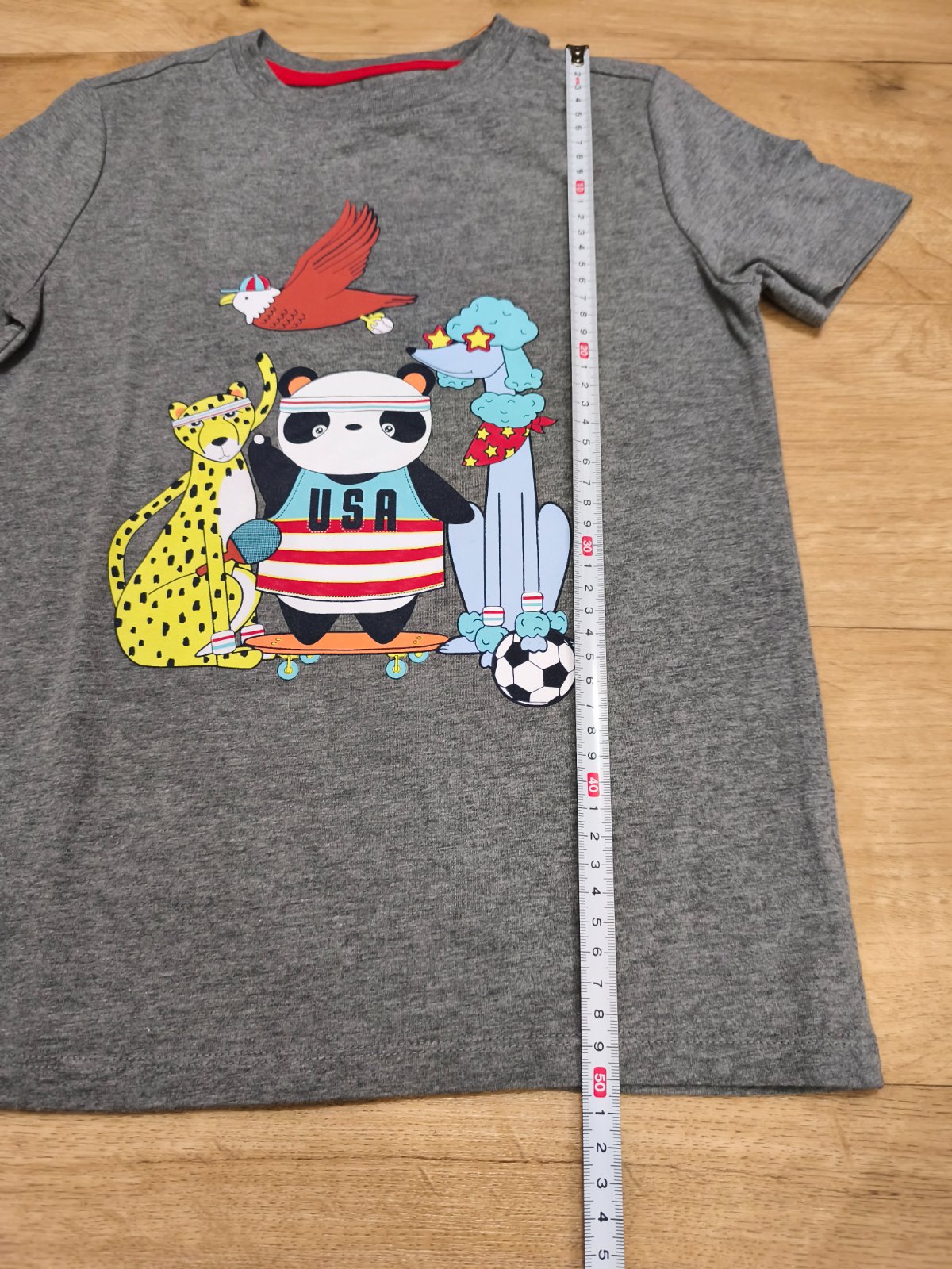 2 trička velikosti na cca 6/7 let - rozměry na fotkách. Šedé přivezené z USA, s visačkou, červené nošené.