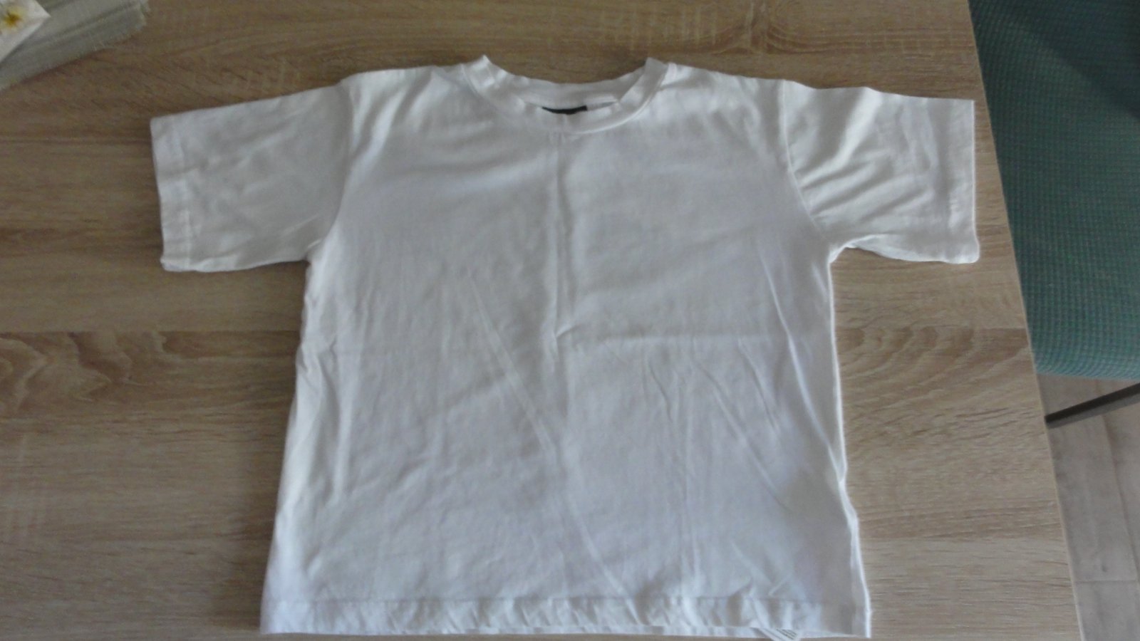 prodám triko s potiskem v bílé barvě,zn.kik,vel.134/140,délka 46cm