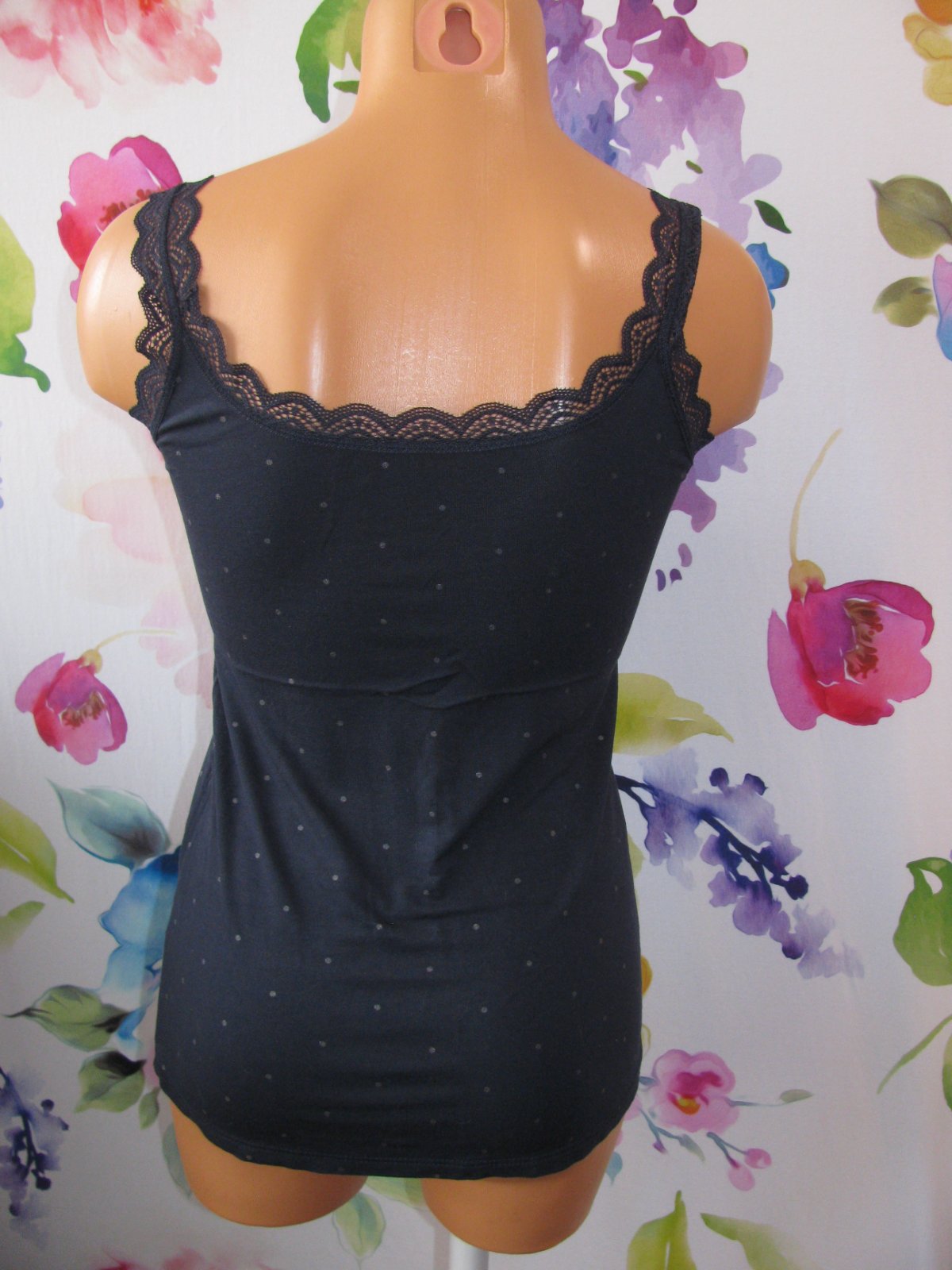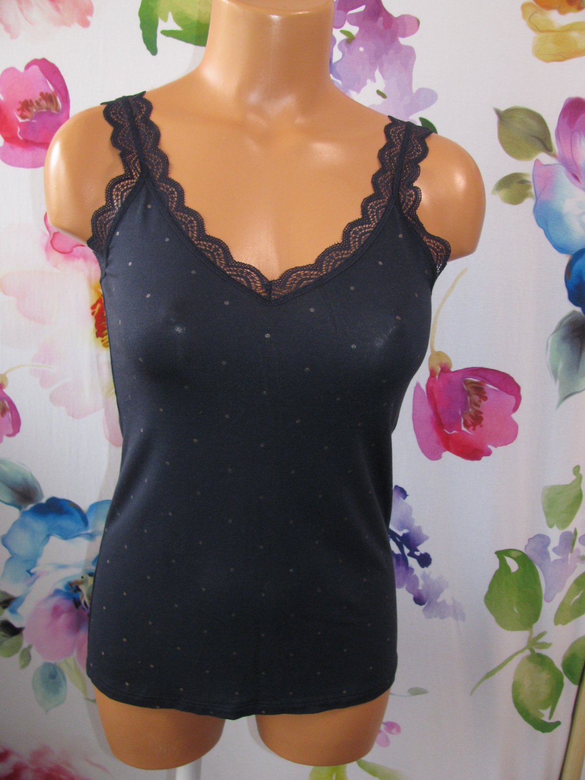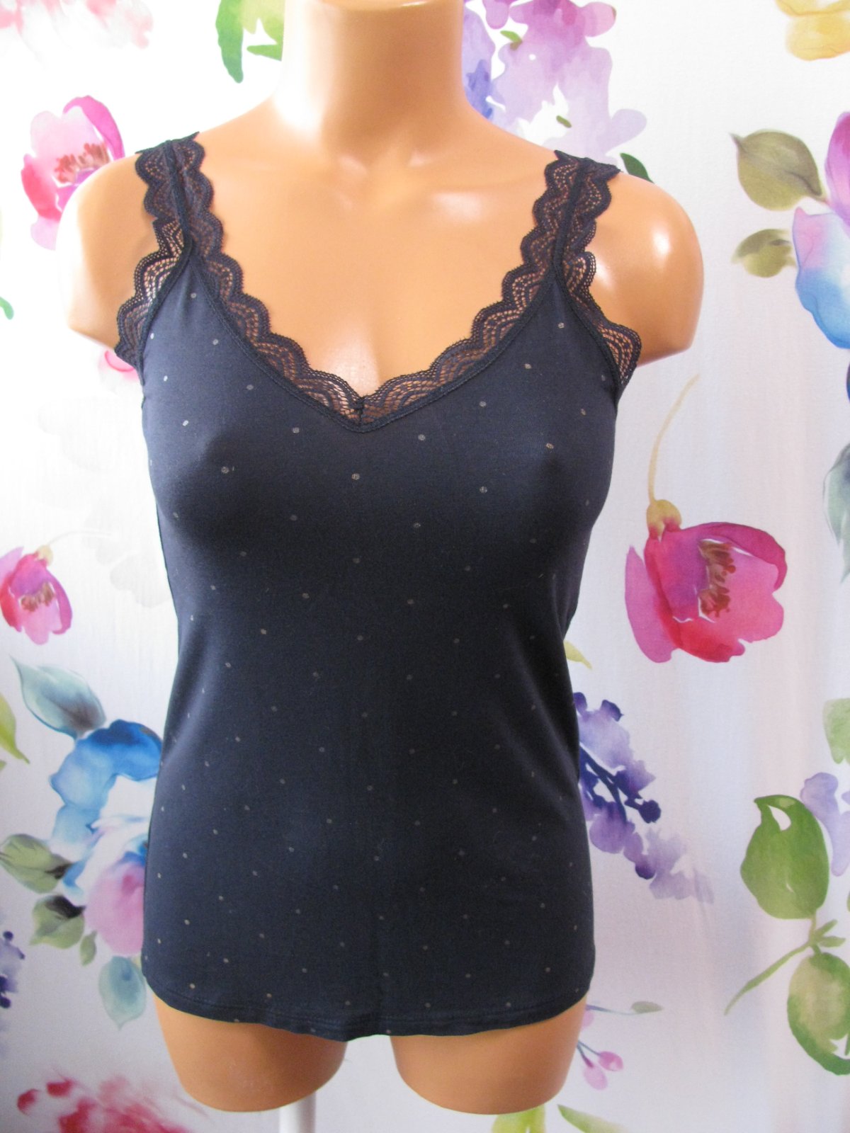Dámské modré tílko s krajkou a drobným vzorem