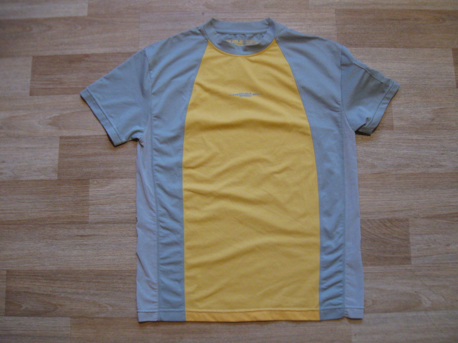 Jako nové, nevyužité polyesterové sportovní triko, krásná, sytá barva, temnější, než na fotu, nezatrhané, vpředu dole logo, d. 68, š. 49cm