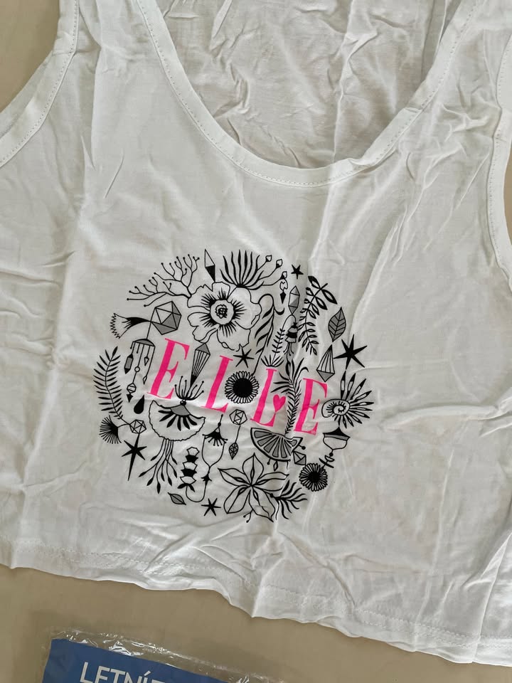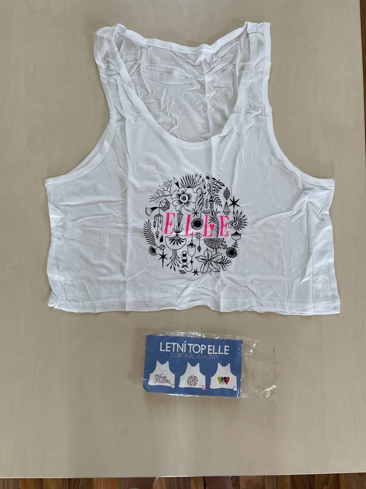 1961. nabízím k prodeji tento nový krátký letní top, vel není uvedena asi lze na tělo nebo volně, ale raději měřte, Elle. Materiál 100% viscoza. nový, vez vad, krásný