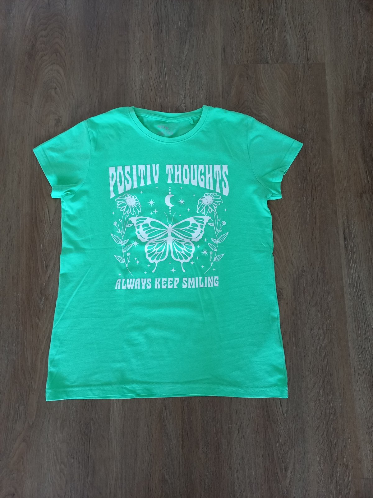 Hezké nenošené tričko, koupeno kvůli druhému v sadě. Barva jasnější a více do pistáciova. Uvedená vel. 158/164, délka 58 cm, šířka pod pažemi 43 cm. Nejlépe osobní odběr v Brně (Bystrc; Stránice – ul. Roubalova). Cena 50 Kč, případně + doprava dle zásilkovny/ČP.