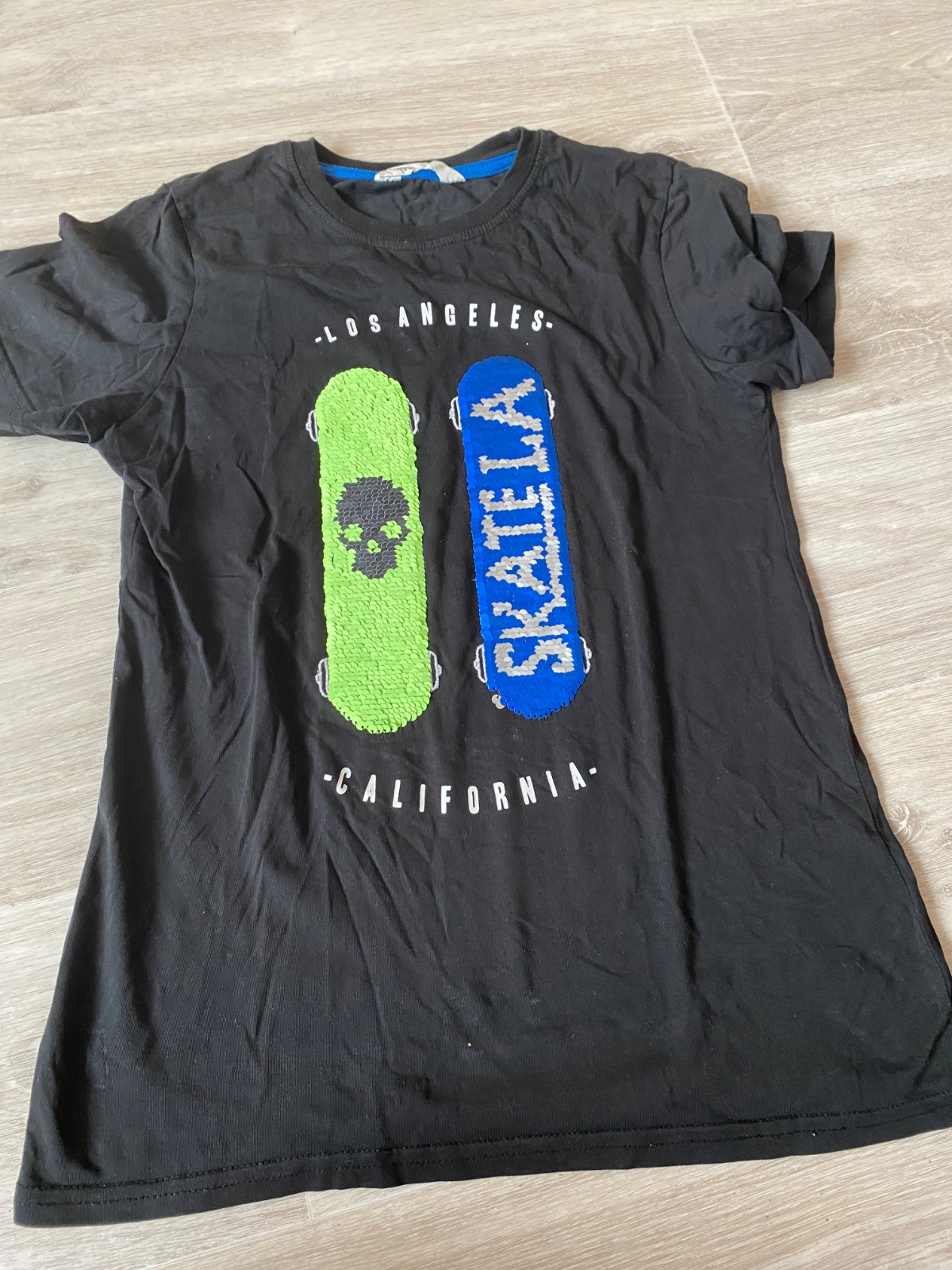 Tričko s krátkymi rukávmi a potlačou na prednej strane, zn. Takko Fashion, velk. 146/152, dĺžka - 56cm, 100% bavlna V super stave.