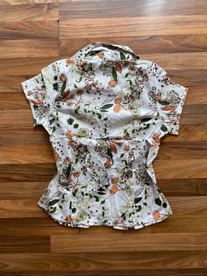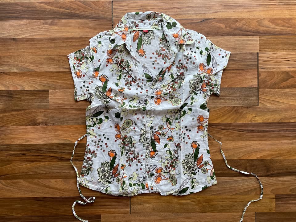 3223. nabízím k prodeji tuto halenku s vázáním do zad, vel 40/tedy L, a 14 tedy i XL, ale v prsou je menší cca M-L, měřte prosím nepruží, S.Oliver. Materiál tenké pláténko, složení neuvedeno podobně jako bavlněné halenky. Knoflíčky do poutek, do zad tenká vázačka. Nošené, bez vad, krásná