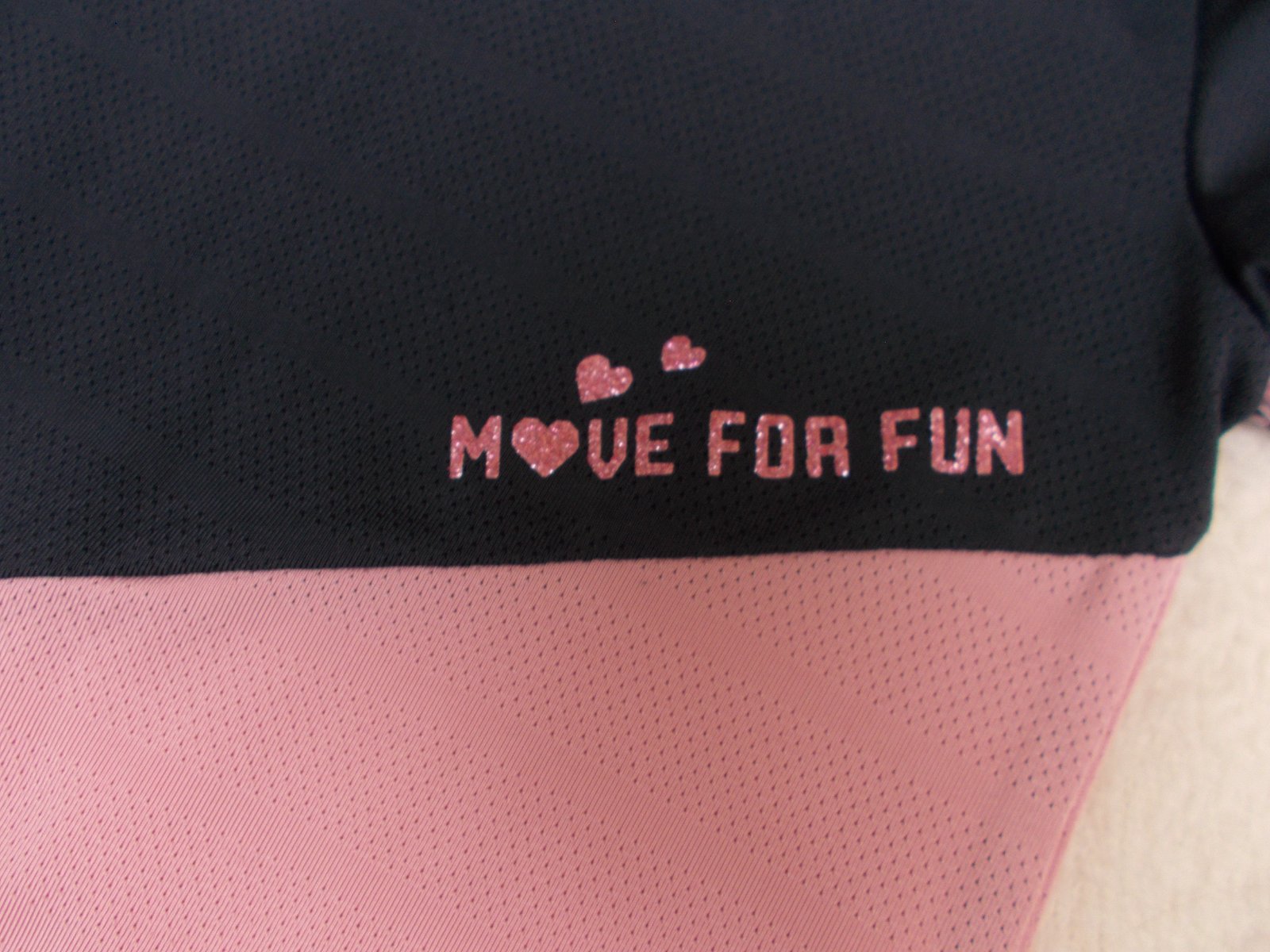 Krásné sportovní triko z funkčního materiálu v růžovo-šedé barevné kombinaci, třpytivý nápis Move for fun.