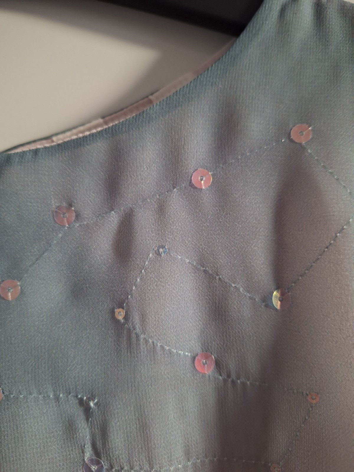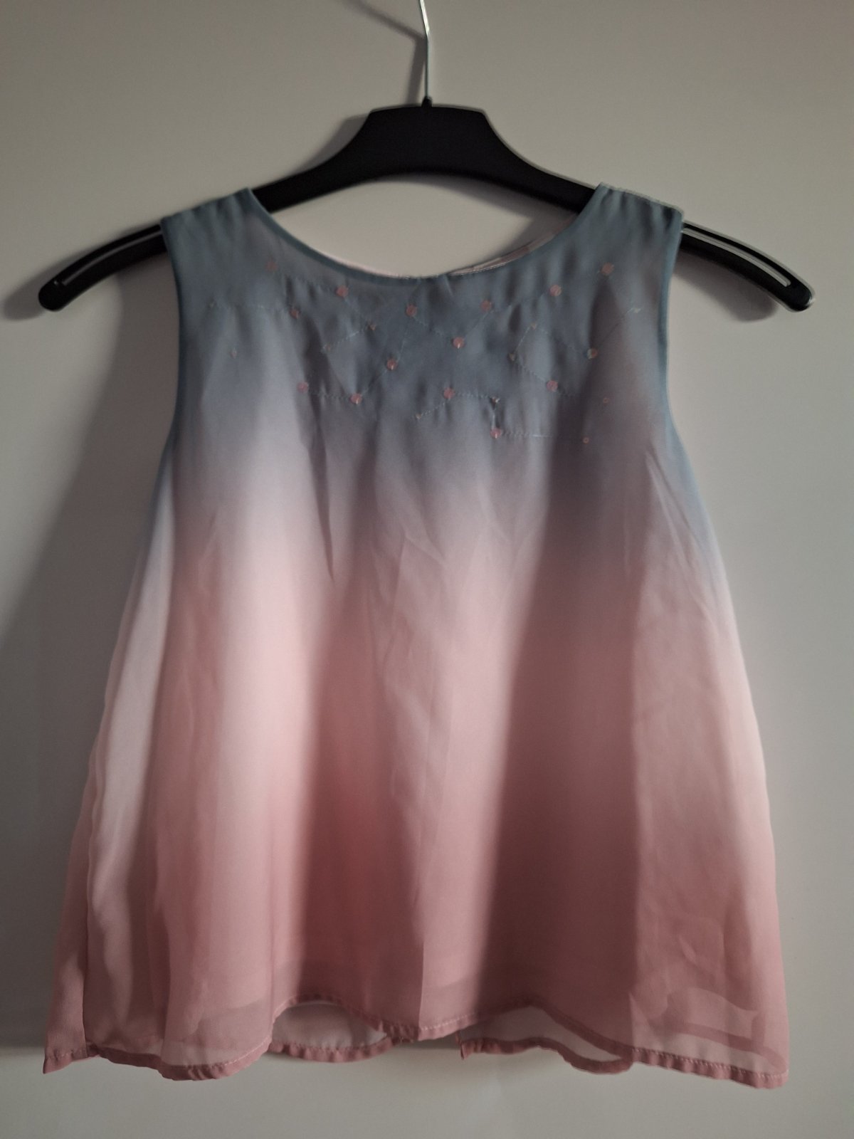 Dívčí top tílko s flitry, zapínáním na 1 knoflík a dvojitým vrstvením, aby látka nebyla průhledná.