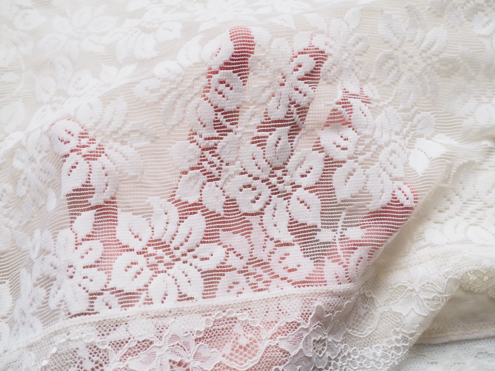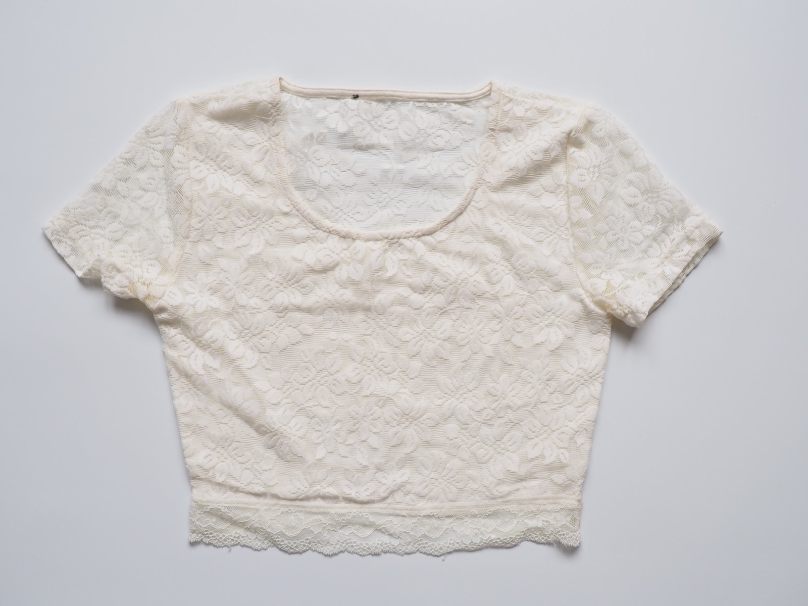 Krátké tričko s krajkou. Zadní strana trička je průhledná. Tričko je elastické.