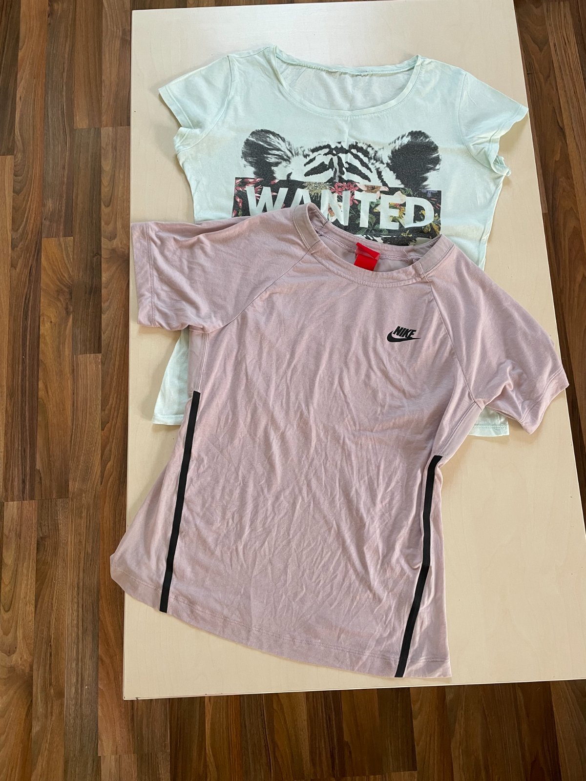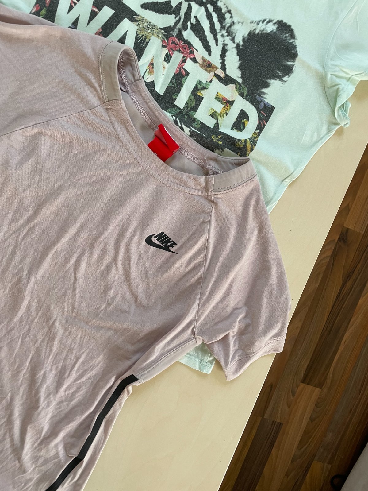 hol. nabízím k prodeji set 2 triček, Nike a bleděmodré bez značky. Vel růžové S, bleděmodré nošené jako S/M, měřte. Triko nikde je taková tluměná růžová (do šeda) má různé odstíny, na zádech je zesílený pruh z jiného materiálu, zbytek takový pavučinkový. Barva nejde dobře nafotit!. Vnitřní cedulka se složením odstřižena. vhodné i na sport aktivity. Bledě modré s obrázkem je asi bavlna, štítky odstřiženy. Obojí nošené, bez vad, krásné