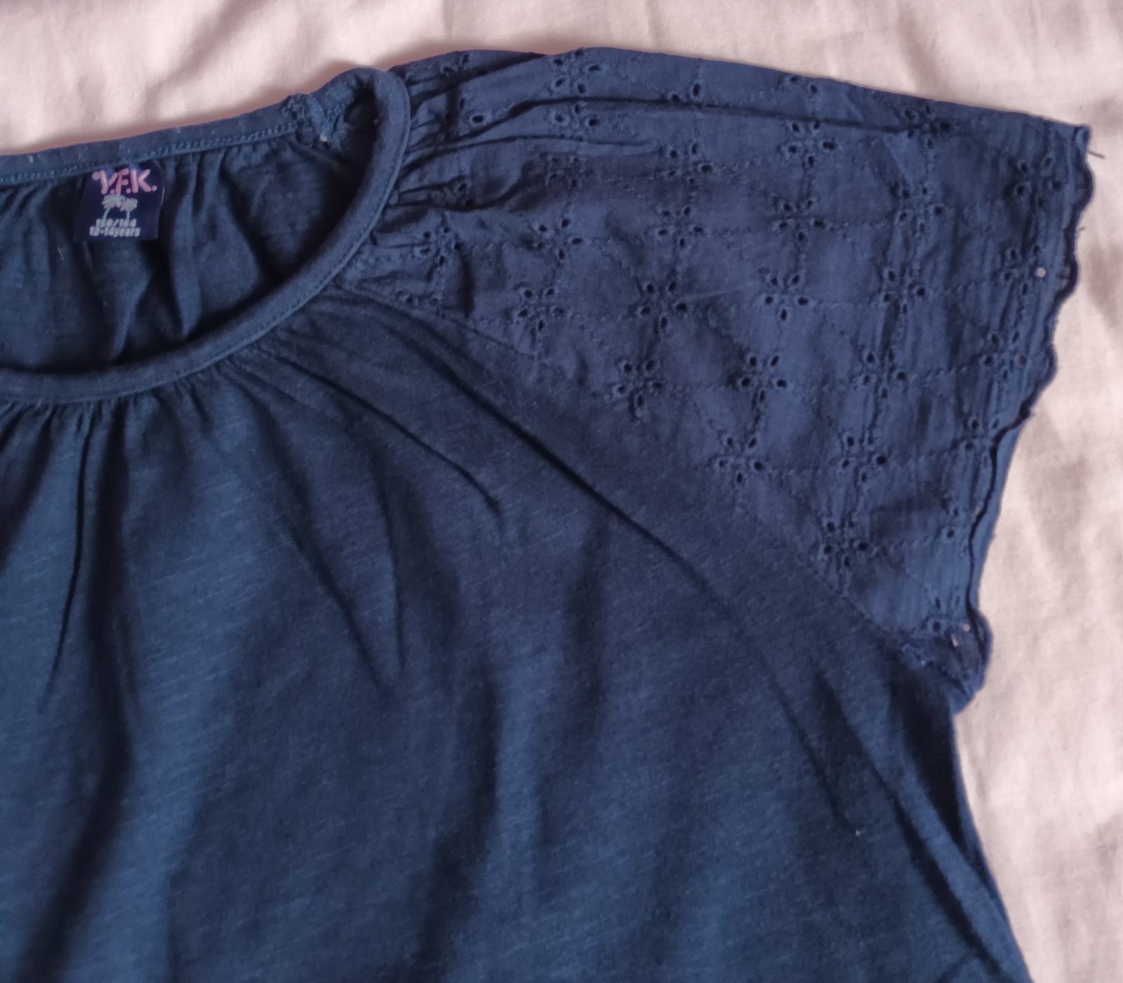 Dívčí triko tmavě modré krátký rukáv s výšivkou , Kik, vel.158/164. Triko je šetřené , bez vad.