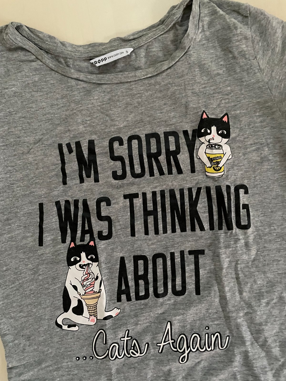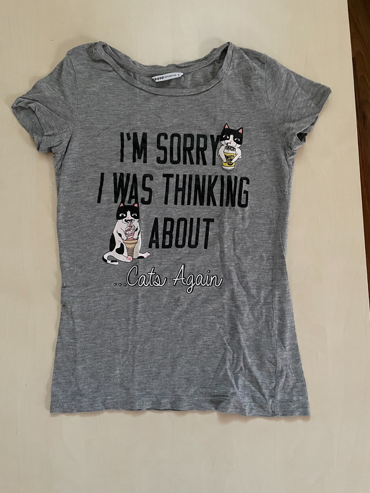 hol. nabízím k prodeji toto šedé triko s nápisem a kočkami, vel S, Cropp. Materiál 90% bavlna. Nošené, bez vad, krásné