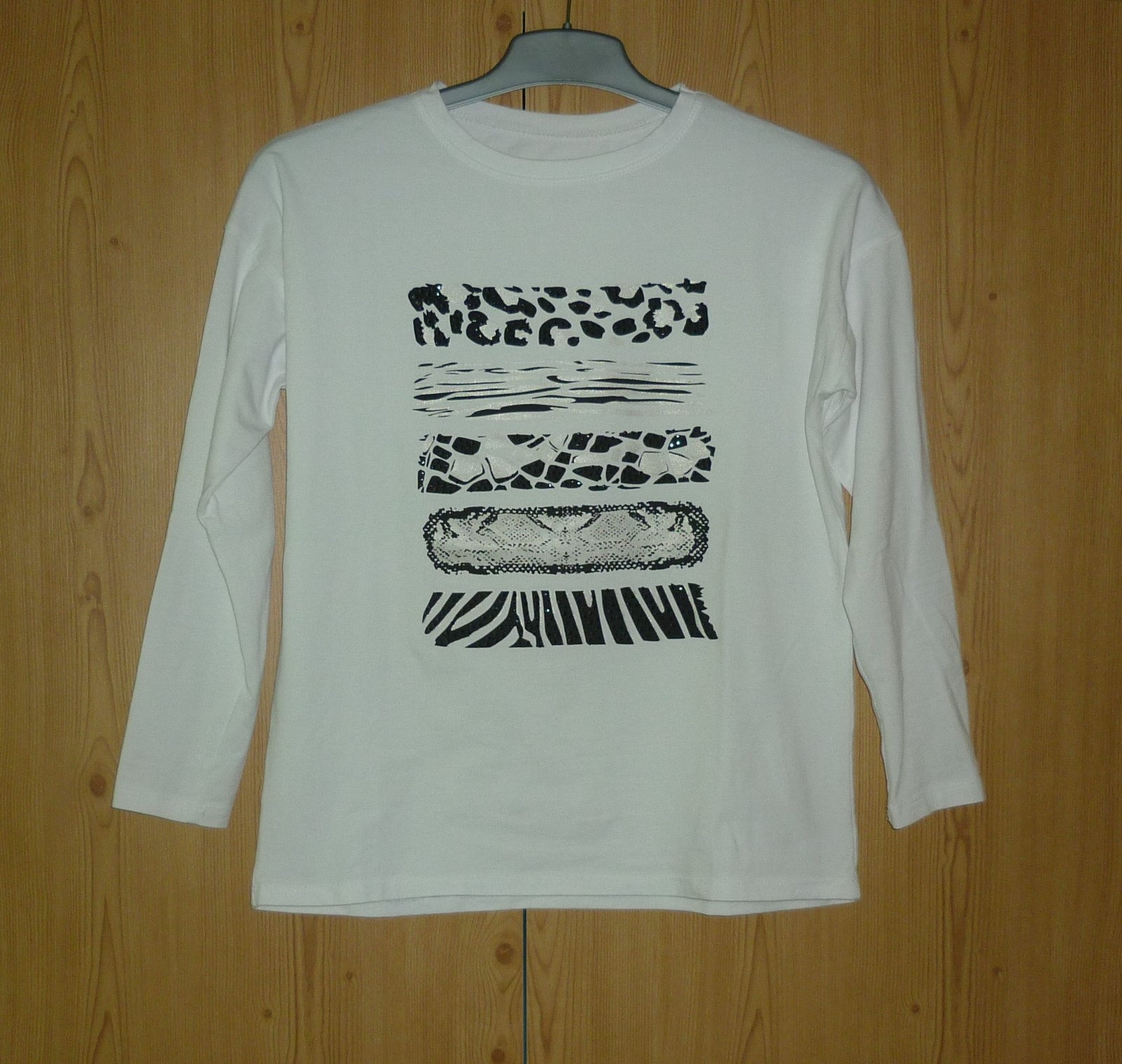 Prodám dámské bílé tričko Moda Italia, asi 2x na sobě, ve velmi dobrém stavu. Dlouhý spadený, lehce netopýří rukáv, na předním díle potisk a aplikace z kamínků. Štítek se složením chybí, ale jedná se o opravdu velmi příjemný, pružný materiál (tipuji bavlna, viskóza, elastan). Velikost není uvedena, řadím do M. Rozměry: šířka v místě podpaží v klidu 54cm x 2, celková délka 62cm, délka rukávu od výstřihu 63cm. Cena: 170,-Kč + poštovné. Koukněte na moje další inzeráty, třeba si něco vyberete a ušetříte na poštovném. Tel.: 728 455 567