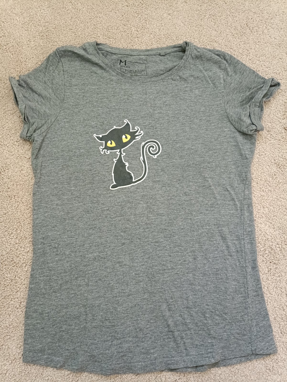 Tmavě šedé triko s nažehleným obrázkem kočky