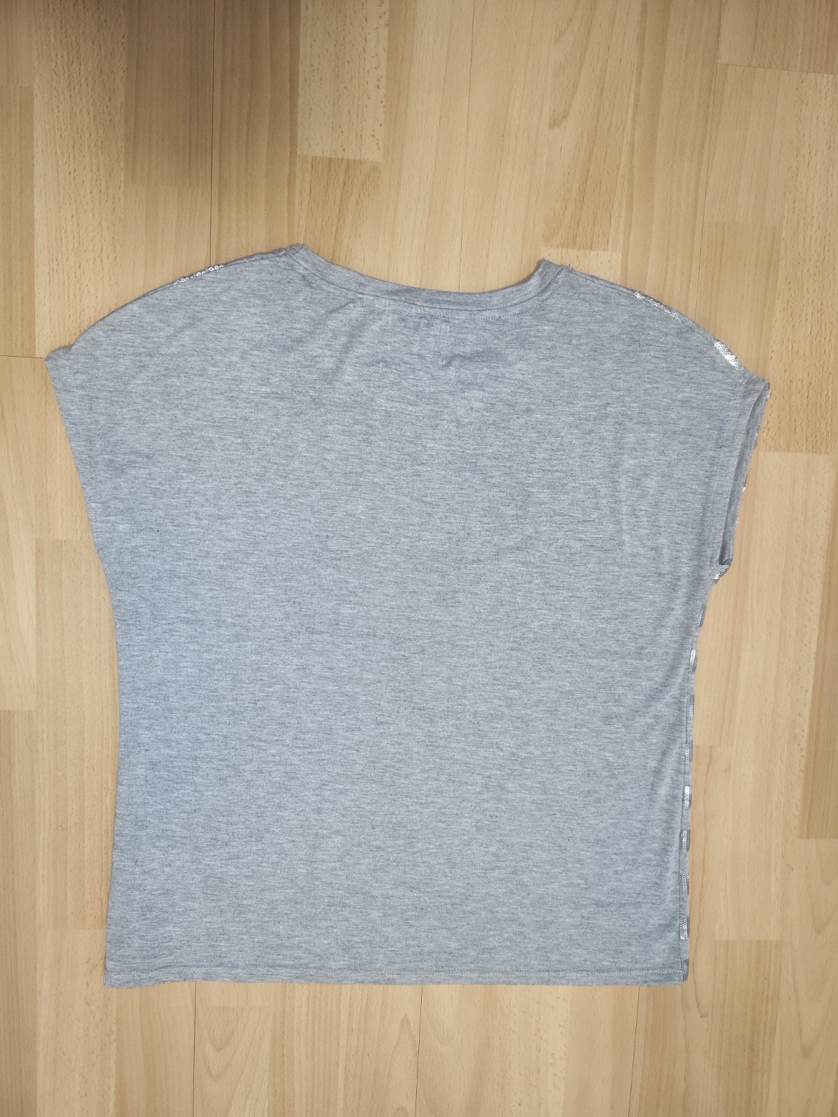 Prodám triko Holly & Whyte (Lindex), velikost S, ale spíše M, rozměry – délka od ramen 60 cm; šířka v podpaží 49 cm. Materiál 35% viskóza, 60% polyester, 5% elastan. Přední část zdobí jemné flitrové pruhy, které dodávají triku šmrnc. Cena 120 Kč, v Brně možné osobní předání.