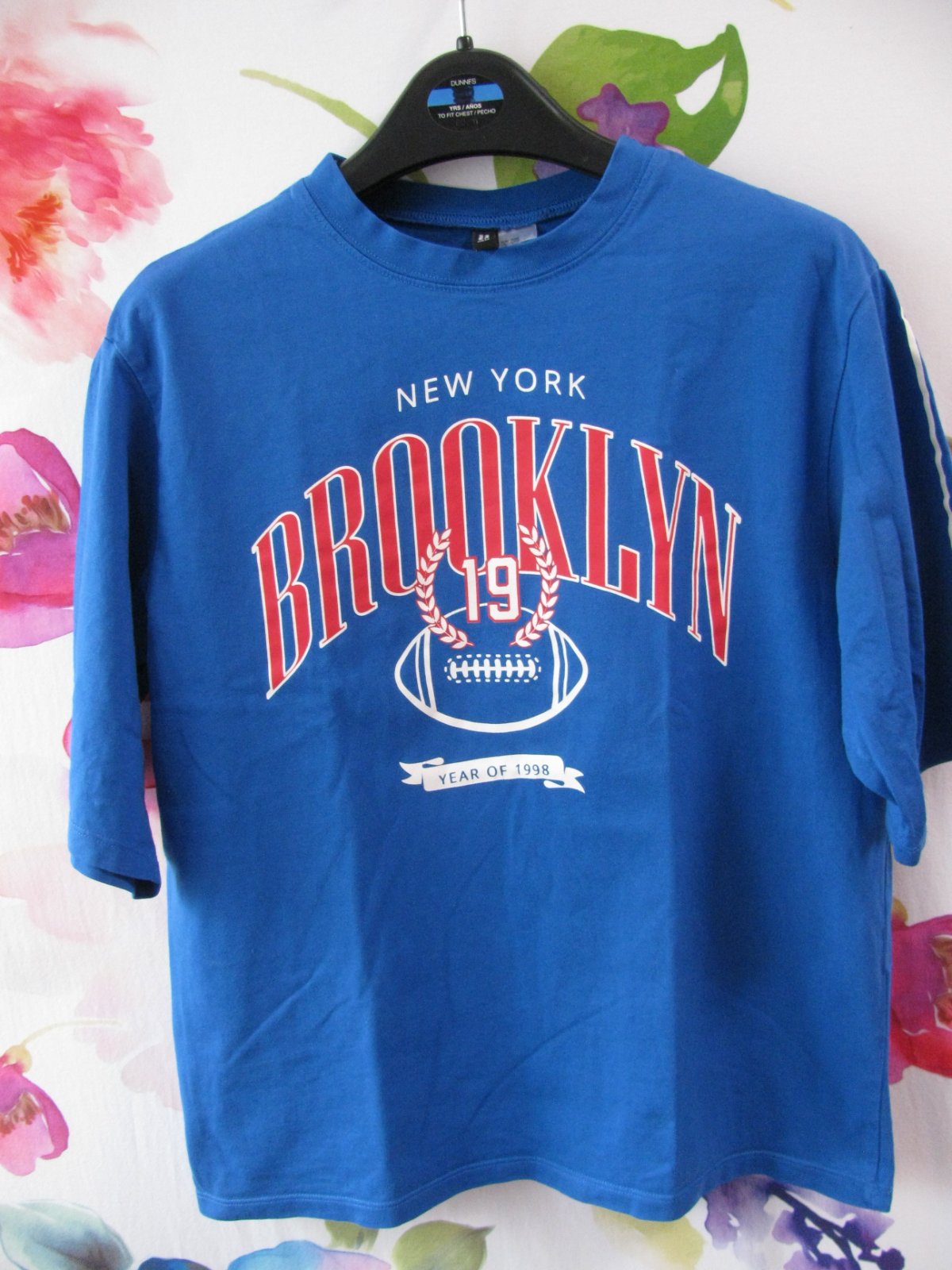 Modré bavlněné tričko, s potiskem, 100% bavlna.