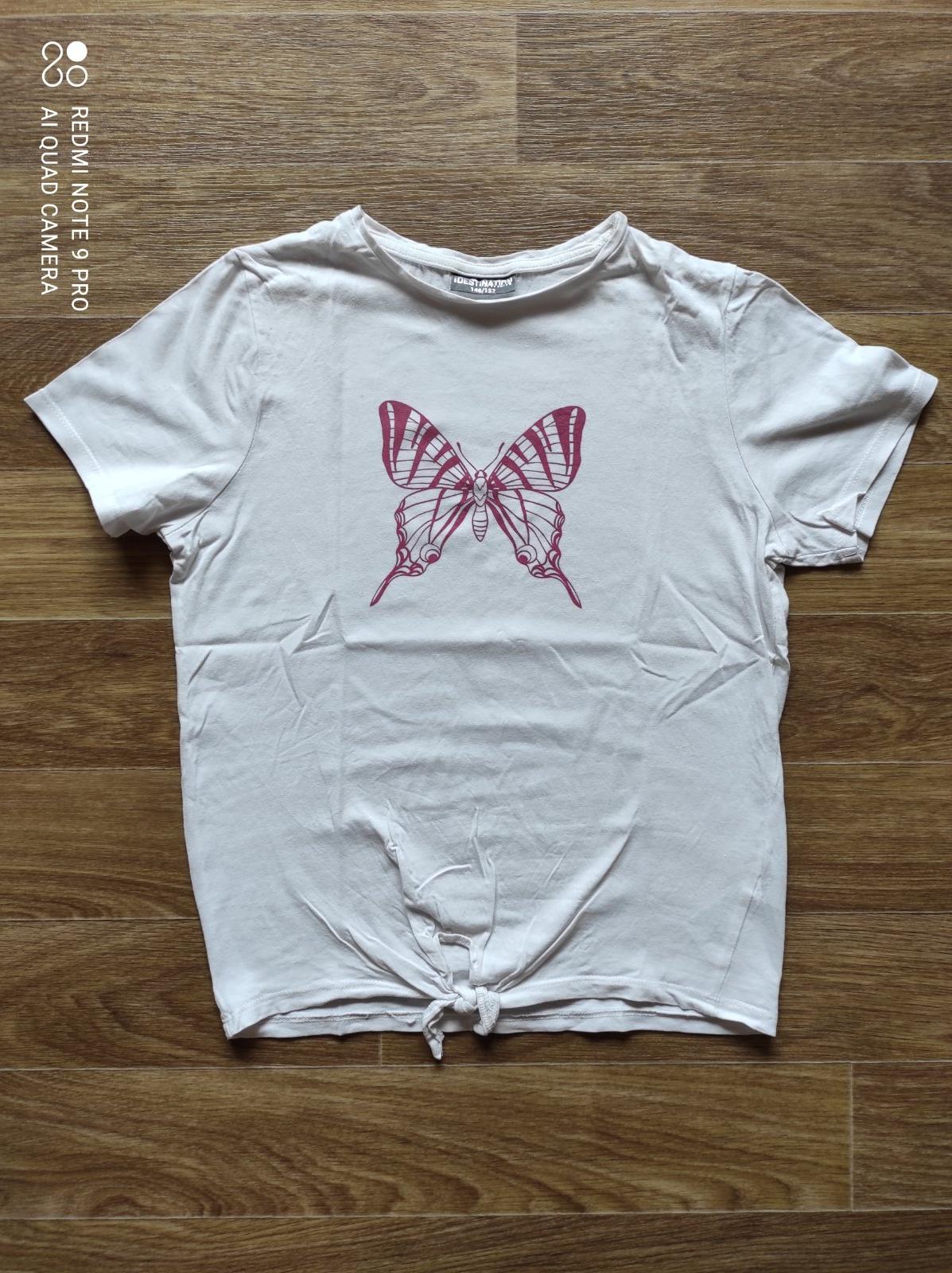 Obě trička kupovaná nová, nošená, nezničená, stále moc pěkná, bez vad. Bílé s dívkou: délka 54 cm, šířka 38 cm. Melírové s nápisem: délka 48 cm, šířka 36 cm. Cena celkem.